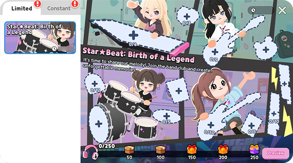 根據累積點數,可獲得「搖滾樂團校車」交通工具、「搖滾巨星服飾套裝」、「搖滾巨星」名牌等豐富獎勵。