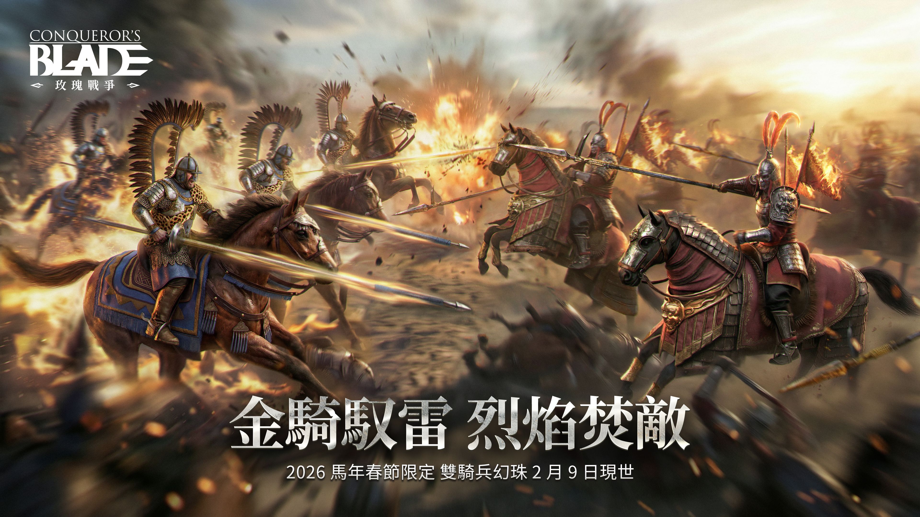 將軍,聽見了嗎?那是大地在顫抖的聲音。戰場之上,唯有衝鋒的鐵騎能撕裂沈寂。今日,我們將為您的精銳之師注入靈魂!《戰意》全新兵團幻珠特效——「波蘭翼騎兵·馳騁」與「榆林驃騎營·旗驥」正式列裝。金戈鐵馬,氣吞萬里,讓每一次衝鋒都成為敵軍眼中的夢魘!????波蘭翼騎兵·馳騁當背負雙翼的死神開始衝刺,風暴便已隨行。全新幻珠「馳騁」專為波蘭翼騎兵量身定製。裝備此幻珠,當翼騎兵發起衝鋒時,流金般的光輝將伴隨馬蹄飛濺,宛如聖光加持。那不僅是速度的具象化,更是「上帝之矛」穿透敵陣時的榮耀軌跡。特效亮點: 衝鋒時伴隨金色流光拖尾,強化「連人帶馬撞碎一切」的視覺衝擊力,羽翼震顫之間,盡顯歐洲重騎兵的輝煌與霸氣。???? 榆林驃騎營·旗驥邊軍精魂,在這一刻化作燎原烈火。全新幻珠「旗驥」為榆林驃騎營注入了最純粹的進攻意志。其疾如風,其徐如林,而當他們亮出獠牙,便是侵略如火!特效亮點: 衝鋒時身負烈焰,每一次揮刀都彷彿帶著烽火的灼熱,將榆林鐵騎的威懾力提升至全新高度。當「馳騁」遇上「旗驥」,這不僅是特效的升級,更是東西方騎兵巔峰榮耀的碰撞!現在,為您的王牌騎兵披上這層令人生畏的光輝,讓敵人在您「動地而來」的衝鋒中顫慄吧!