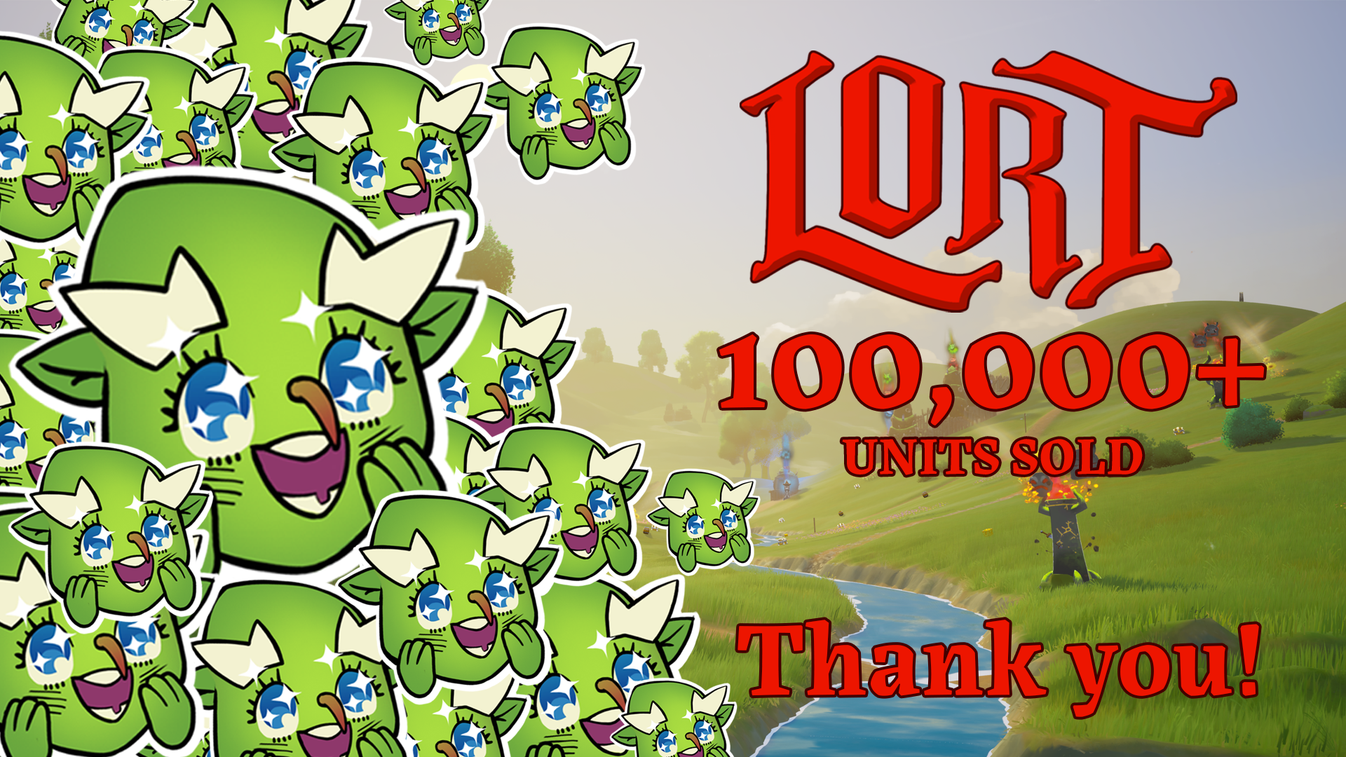 What a launch weekend we are having. Thank you for 100,000 units sold of our sweet baby LORT in just over 3 days. This is absolutely nuts. The team is working hard on game updates to bring you newer, better, weirder LORT for you to LORT to soon. We hope you all have a weekend full of Legendary loot drops, one-hit brick kills, and the pleasant squawks of our dear dear Lawrence Fishbird. When life gives you lemons, make LORT.