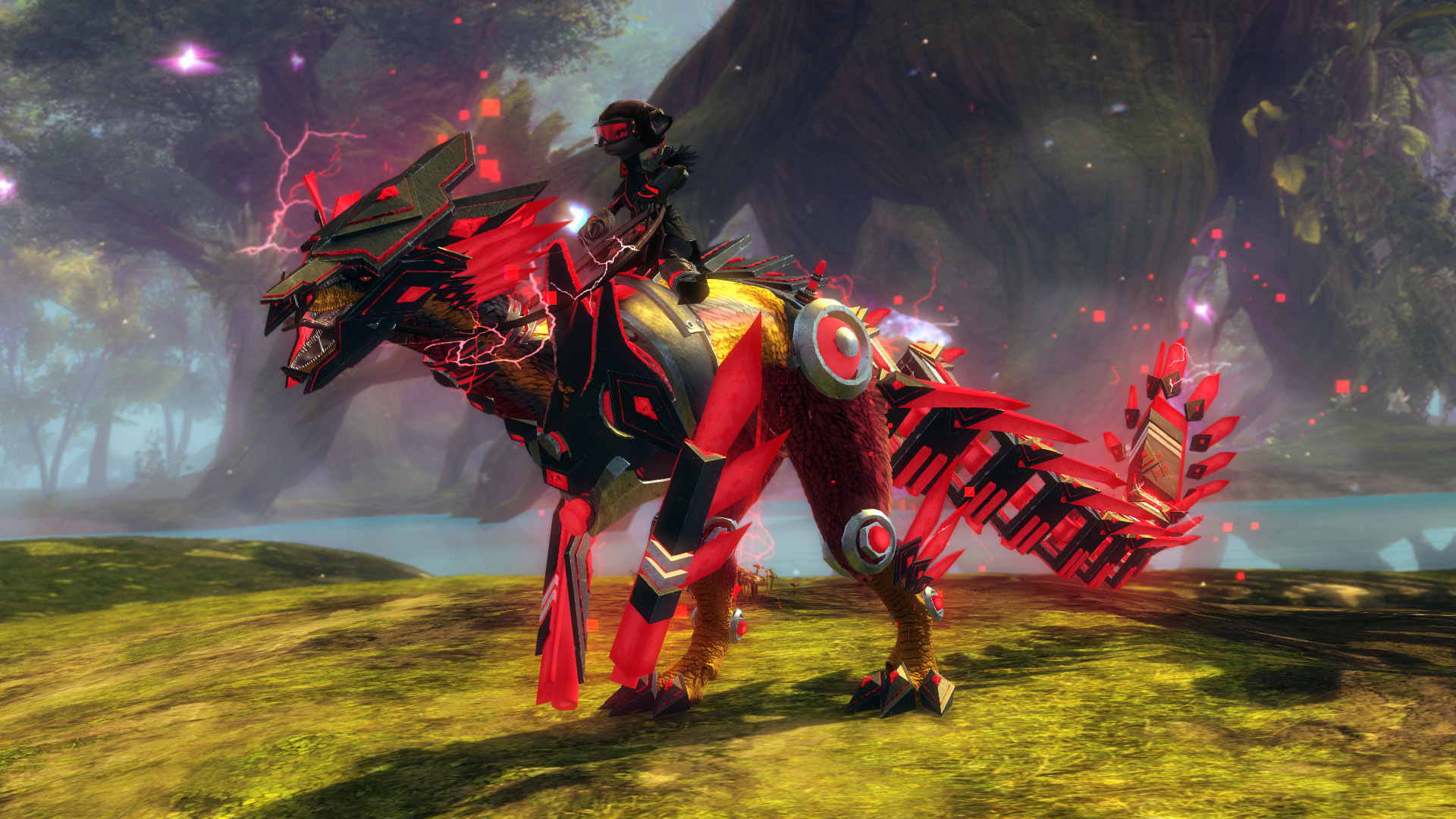 The Tyrian Alliance's efforts to free Castoran wildlife from Inquest facilities continues. These two augmented creatures are looking for a loving home to recover and flourish! The Inquest Mount Package contains the Inquest Raptor Skin and the Inquest Skimmer Skin and is now available for 1,600 gems.