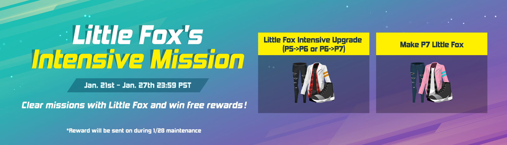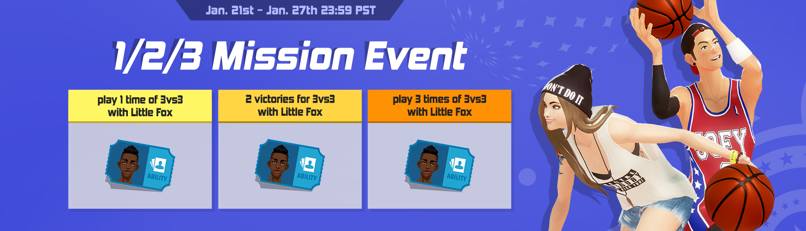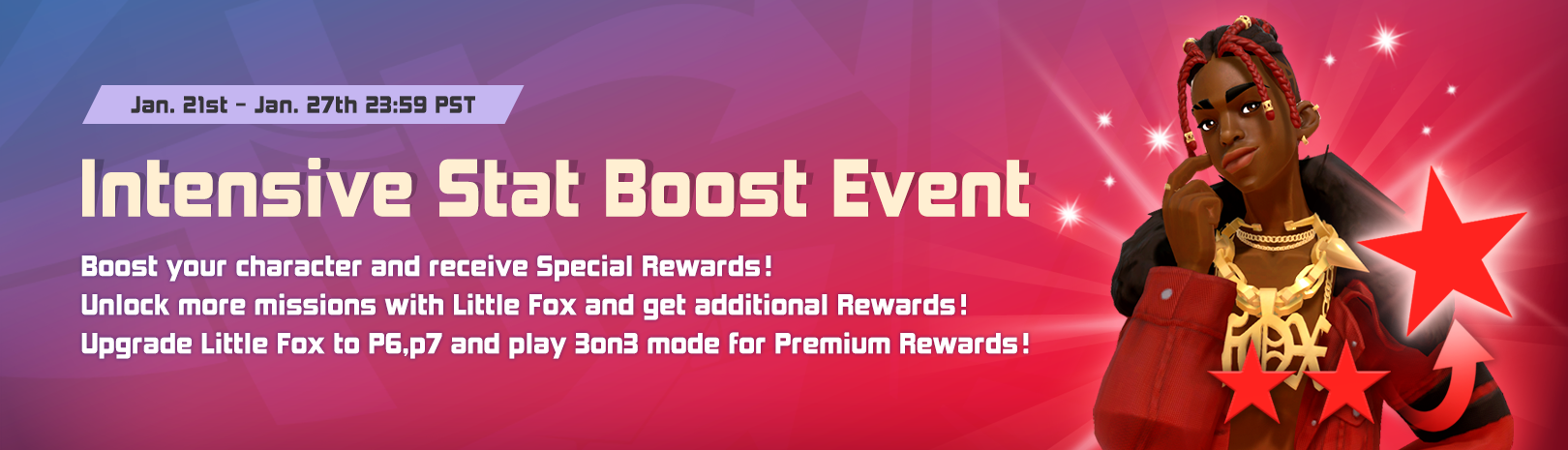 Greetings FS City ballers!The new events are launching this week, and we’re thrilled for you to experience them! Bring your friends, jump in together, and help us spread the excitement.[color=orange]1. Little Fox’s Boost Login Event[/color]Event Duration: 2026/01/21 - 2026/01/27 23:59 (PST)Celebrate Little Fox’s Intensive Update! Log in daily to collect tickets for Little Fox![color=orange]2. Little Fox’s Stay Connected Event[/color]Event Duration: 2026/01/21 - 2026/01/27 23:59 (PST)Stay online during the event and earn special rewards!The more time you spend in-game, the more plentiful rewards await you.[color=red]*[/color] Your total daily connection time will be counted, and it resets at 00:00 (PST) every day.[color=red]*[/color] Rewards can be claimed on the event page and will be sent to your mailbox[color=orange]3. New Intensive Character Update[/color]Celebrate the arrival of New Intensive Character!Join matches with Little Fox who has surpassed his limits![color=orange]4. PG Management Packages[/color]Event Duration: 2026/01/21 - 2026/01/27 23:59 (PST)Special growth packages for PG position are on sale!Enjoy a one-time purchase limited Intensive Growth Package or grab the Basic Growth Package for more chances![color=orange]5. Iconic PG Theme Shopping Bag[/color]Event Duration: 2026/01/21 - 2026/02/03 23:59 (PST)Check out the PG specialized shopping bag packed with diverse outfits![color=orange]6. Intensive Stat Boost Event[/color]Event Duration: 2026/01/21 - 2026/01/27 23:59 (PST)Level up Little Fox and reach P6 and P7 grade to earn valuable rewards during the event![color=orange]7. FS Warehouse Map Event[/color]Event Duration: 2026/01/21 - 2026/02/10 23:59 (PST)Celebrate the Little Fox update with a special event in the FS Warehouse!A map filled with multiple character stories![color=orange]8. Little Fox Growth Box Promotion[/color]Event Duration: 2026/01/21 - 2026/01/27 23:59 (PST)Purchase Growth Boxes with Points and receive Growth Box Tickets as payback!Don’t miss the EXP boost for Little Fox’s growth too![color=orange]9. Little Fox’s Intensive Mission[/color]Event Duration: 2026/01/21 - 2026/01/27 23:59 (PST)Upgrade Little Fox to P6 and P7 for prizes![color=yellow][Event Details][/color]- Intensive upgrade 1time Little Fox (P5 -> P6, P6 -> P7): Little Fox THEME No.3- Make P7 Little Fox : Little Fox THEME No.2[color=red]*[/color] Rewards will be distributed during the maintenance Jan. 28th[color=orange]10. 1 / 2 / 3 Mission Event[/color]Event Duration: 2026/01/21 - 2026/01/27 23:59 (PST) Little Fox-exclusive 1 / 2 / 3 Mission Event is here!Play as Little Fox and earn additional rewards[color=orange]11. Special Point Bundle DLC Purchase Limit Reset[/color]The purchase limit for the Special Point Bundle has been reset.Don’t miss your chance to grab it!- 3on3 Freestyle Team