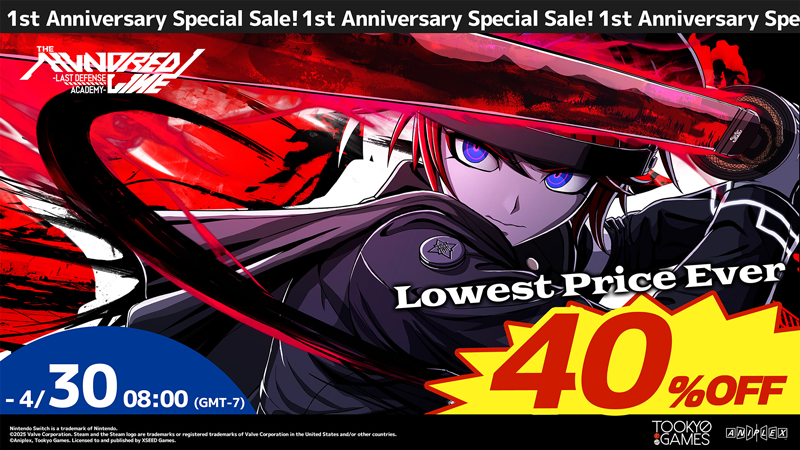 Today, April 24th, marks the one-year anniversary of the release of "The Hundred Line -Last Defense Academy-"!We extend our deepest gratitude to everyone who has picked up and played this game and supported us.To celebrate our 1st anniversary, we're holding a limited-time sale for one week starting today!The regular edition is now 40% off – our biggest discount ever!A school life filled with 100 days of extreme despair awaits you!\[Sale Period]April 23rd (Thu) 8:00 AM - April 30th (Thu) 8:00 AM (PDT)We appreciate your continued support of "The Hundred Line -Last Defense Academy-"https://store.steampowered.com/app/3014080/HUNDRED_LINE/