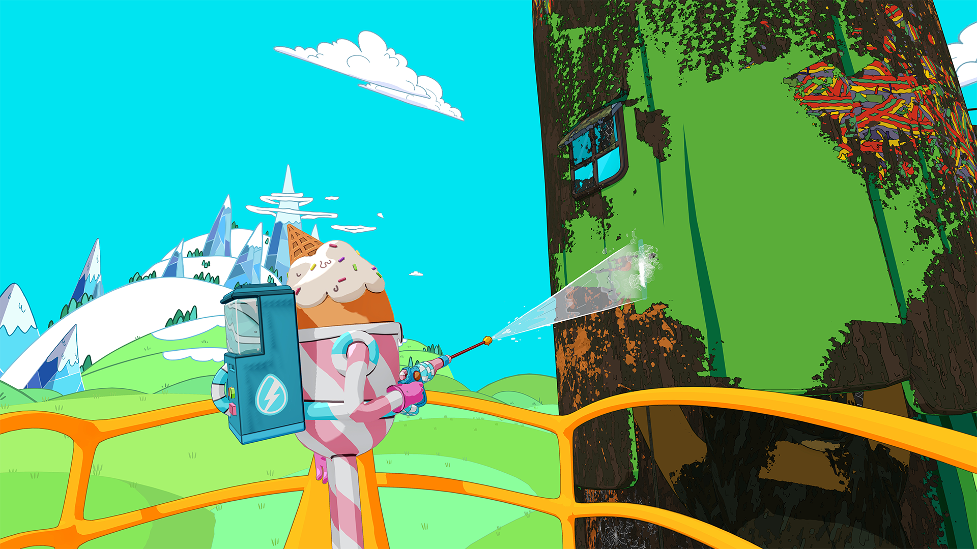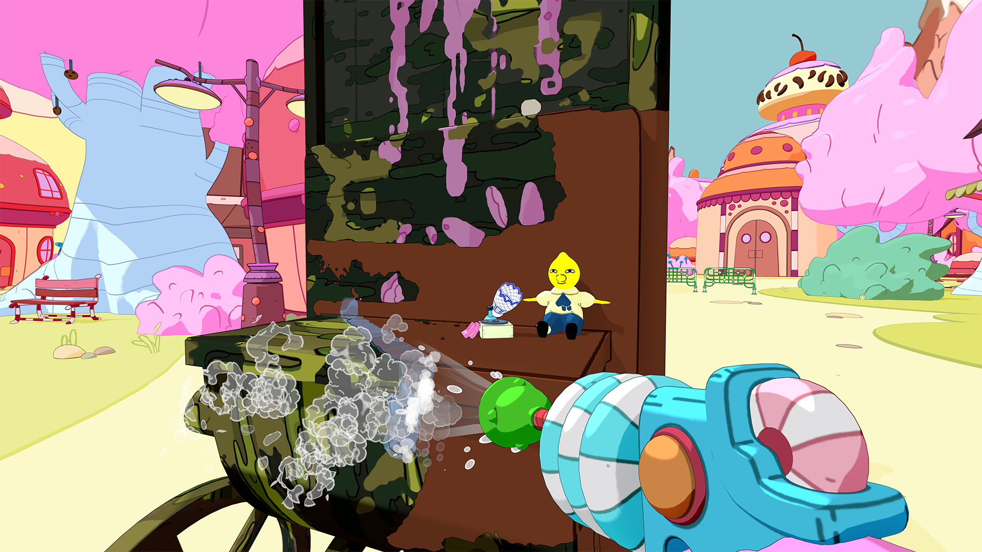 What the flip?! Some ding dong has completely covered The Candy Kingdom in schmutz, and it's up to us to clean it up! Suit up those buns and grab your washers, it's time to get to work.