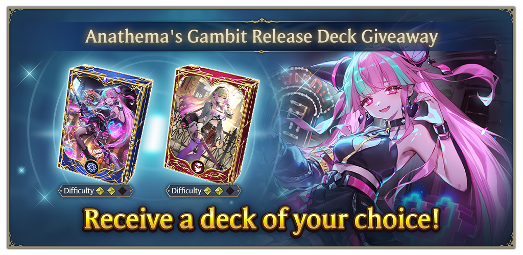 To celebrate the release of the new card set, Anathema's Gambit, we're giving out a free deck to all players!