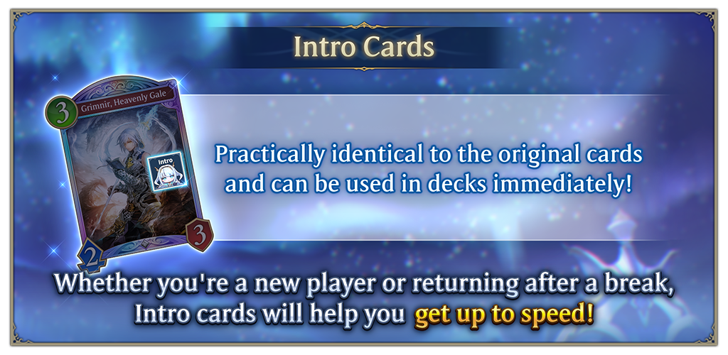 Intro cards will be a permanent feature until further notice. To help all players improve their decks, we will be holding the following events, which will include hundreds of Intro cards as rewards!