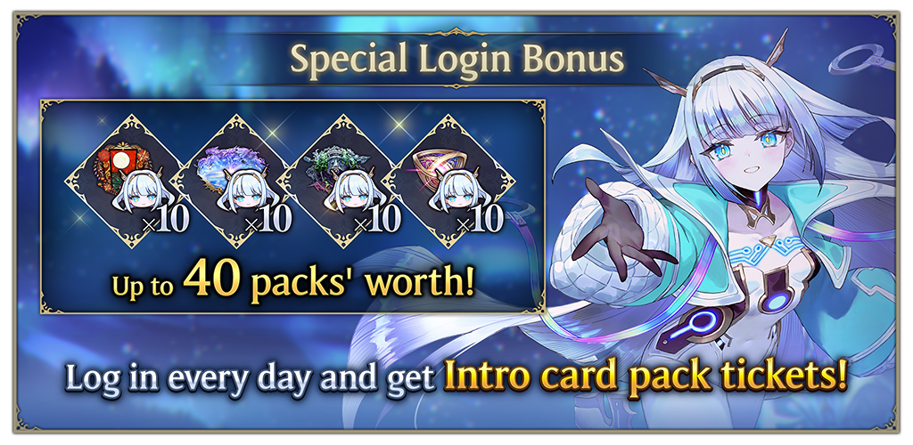 Log in to the game on eight different days during the event to receive up to 40 Intro Card Pack tickets! This will give you a range of cards that you can use in the Rotation format to help you get up to speed.