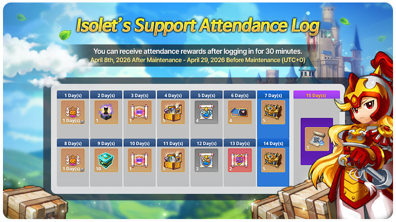- The end date of the ‘Special Login Reward Event’ that started after the March 18 Maintenance has been extended by three weeks. (April 8, 2026 Before Maintenance → April 29, 2026 Before Maintenance) Don’t miss the special rewards!