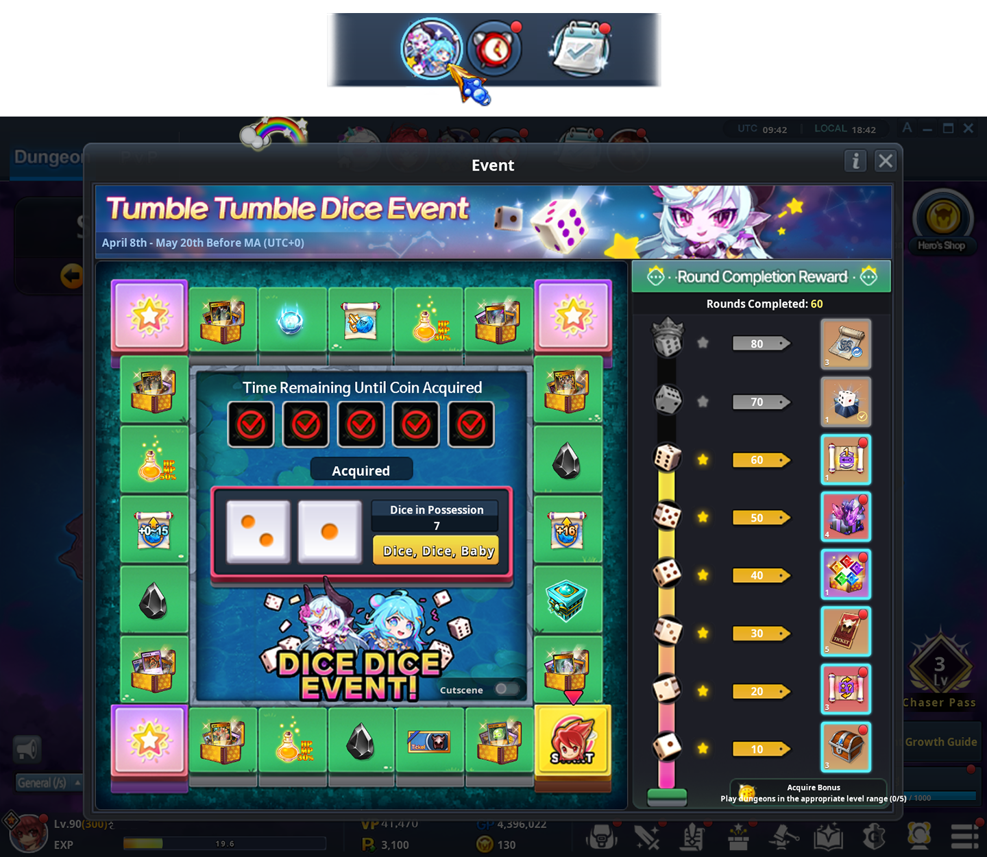 - Players can progress with the Dice Game by using the [Tumble-Tumble Dice Coin] acquired from gameplay.