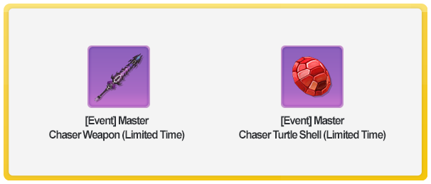 - Event Equipment: [Event] Master Chase Weapon, [Event] Master Chaser Turtle Shell (Limited Time, Total 2)