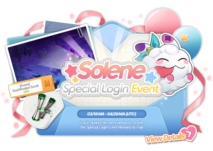 Hello, Heroes of Bermesiah!1. Seal Breaker Coordi Encore Event (April 15, 2026 (Wed) 06:00 - May 6, 2026 (Wed) 06:00 (UTC+0))- Dokaebi King- Star Chaser & Guardian- Lord of the Ocean- Sea Dragon King- Belle Epoque2. Special Login Reward Event Extension (March 18, 2026 (Wed) After Maintenance - April 29, 2026 (Wed) Before Maintenance (UTC+0))- The end date of the ‘Special Login Reward Event’ that started after the March 18 Maintenance has been extended by three weeks. (April 8, 2026 Before Maintenance → April 29, 2026 Before Maintenance) Don’t miss the special rewards!To celebrate the 'Path Shrouded in Darkness' Dungeon Update, a Special Login Reward will be granted to all players who log in to GrandChase Classic during the event period!- Special Login Reward: [Event] Seal Breaker Scroll x50- Special Login Event Rewards will be sent by mail upon logging in during the event period.- Special Login Event Reward mail will expire in 21 days. Make sure to check your mail and receive all the rewards before it expires.3. ‘Path Shrouded in Darkness’ Master Difficulty Play Event (April 8, 2026 (Wed) After Maintenance - April 29, 2026 (Wed) Before Maintenance (UTC+0))- Master Difficulty to Dungeon ‘Path Shrouded in Darkness’ will be added during the event.1) Master Difficulty- Master Difficulty is where players can test their mastery of the ‘Path Shrouded in Darkness’ Dungeon.- Master Difficulty requires a higher Total Battle Power than the Normal Difficulty of ‘Path Shrouded in Darkness’ and requires studying of the boss attack patterns.- When Master Difficulty is cleared, players can receive a one-time reward via Event Mission.- Defeating monsters in Master Difficulty grants rewards at the same chance as on Normal Difficulty. However, rewards exclusive to Normal Difficulty cannot be acquired.2) Special Supplies- Upon the first login during the event, players can receive [Special Supply Mail] once.- [Special Supply Mail] can only be received once per account.- Special Supply Item: [Event] Turtle Shell2) Master Challenge Mission- During the event period, players will receive a Challenge Mission that can be cleared to receive special rewards.- Challenge Missions can be completed once per account.- [Master Challenge] Deepened Darkness 1, 2 is a chain mission that can be cleared in order.① [Master Challenge] Clear Path Shrouded in Darkness Master Difficulty 1 Time (Solo): [Event] Seal Breaker Scroll x10② [Master Challenge] Clear Path Shrouded in Darkness Master Difficulty 1 Time (Party): [Event] Seal Breaker Scroll x10③ [Master Challenge] Deepened Darkness 1: Path Shrouded in Darkness Monster Card Box x5③ [Master Challenge] Deepened Darkness 2: Path Shrouded in Darkness Monster Card Box x10- Players can acquire Season 2-7 Seal Breaker Coordi Items through the [[Event] Seal Breaker Scroll].- Players can acquire Seal Breaker Coordi Items from all Seasons through the [Seal Breaker Scroll].- Players can acquire 1 random card from the following cards based on a set chance from [Path Shrouded in Darkness Monster Card Box]. Path Shrouded in Darkness Monster Card Box Contents Darkness Obsessive Darkness Indomitable Darkness Corrupted Sentinel Guard Corrupted Sentinel Armored Soldier Corrupted Sentinel Sniper One Burdened by Choice One Consumed by Regret The Forgotten One Things That Cannot Be Undone4. Tumble-Tumble Dice Event1) Event Attendance Log (April 8, 2026 (Wed) After Maintenance - April 29, 2026 (Wed) Before Maintenance (UTC+0)) - For 15 days, players can log in to the game for 30 minutes to receive a daily Login Reward.- Players can acquire Serdin Supply Box, Rune Secondary Stat Reset Scroll, [Event] Imprint of Harvest (1 Day) Box, Special Stat Change Scroll, GP Item Property Scroll, Premium GC Club, and other various items.- Players can acquire one of the contents of [Serdin Supply Box] at a set rate.- [Serdin Supply Box] Contents: Single Property Scroll x1, GP Item Property Scroll x1, Reinforcement Protection Scroll (+17) x1, Reinforcement Protection Scroll (+16) x1, Reinforcement Protection Scroll (+0-15) x1, Advanced Rune Summon Box x2, Advanced Skill Rune Summon Box x22) Tumble-Tumble Dice Game (April 8, 2026 (Wed) After Maintenance - May 20, 2026 (Wed) Before Maintenance (UTC+0))(1) Dice Coin - Players can progress with the Dice Game by using the [Tumble-Tumble Dice Coin] acquired from gameplay. - Each day, players can acquire up to 10 Coins and the record will reset everyday at 06:00 (UTC+0). - How to Acquire: ①Acquire 1 every 5 minutes after logging in (Daily Max 5) ②Acquire 1 upon clearing a Dice Event applicable dungeon 1 time (Daily Max 5) - Event Applied Dungeon: Harrier Dungeon, Another World Dungeon, Hero Dungeon, Void Dungeon - Acquired [Lucky Dice Coin] will be immediately updated to the Dice Game Board. (The item will not be stored in the inventory.)(2) Dice Game Board - How to play: ①Players can press [Roll Dice] Button to roll the dice. Used dice will be automati