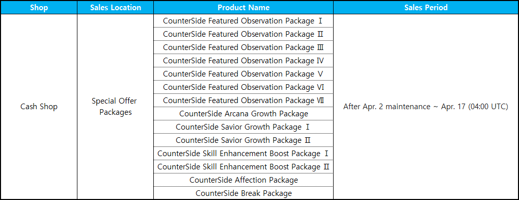 - Period: After Apr. 2 maintenance ~ Apr. 17, 04:00 (UTC)