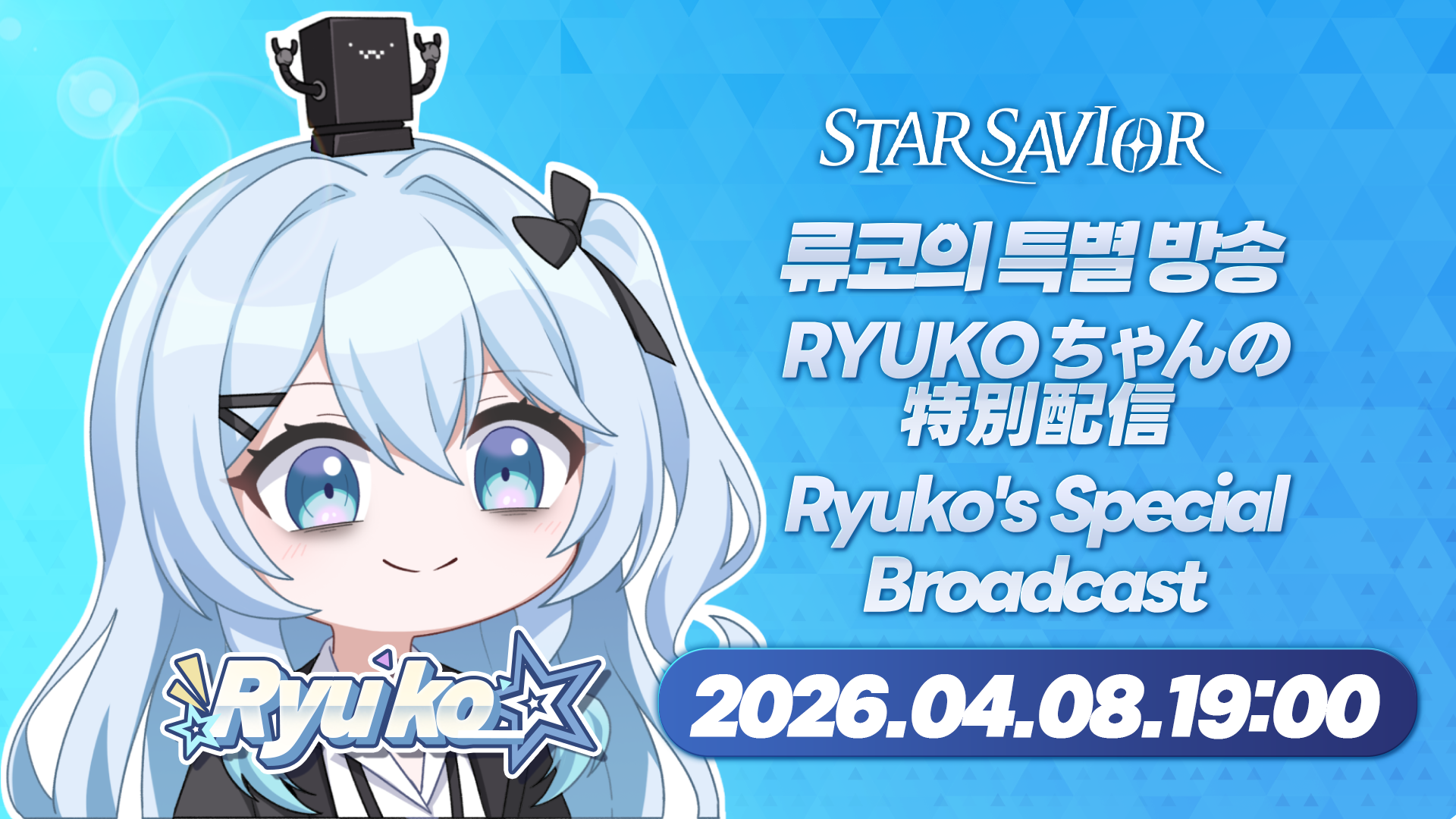 Guide your Star-kissed Saviors, StarSavior!Greetings, Captain! This is your Liaison Officer, GM LisaApril 8, 10:00 (UTC)Ryuko-chan’s Special Broadcast awaits!???? Ryuko-chan’s Special Broadcast ☆Schedule: April 8, 10:00 (UTC)Channel: StarSavior Official YouTube Channel (EN)https://www.youtube.com/@StarSavior_EN[/url]※ This broadcast will be spoken in Korean, and subtitles will be provided for viewing.[/p][/*][*][p]Please click the image below at the scheduled time to be redirected to the broadcast channel. [/p][/*][/list][p][/p][p]We appreciate your interest and support![/p][p][img src="{STEAM_CLAN_IMAGE}/45693889/f6f79bd6fde47b5f6b0409352ab3ab2b88489a6c.png"][/img] Thank you[/p][p][/p][p][img src="{STEAM_CLAN_IMAGE}/45693889/1c751b590e0d113a7ac6f5434f1bea5a24bc46b2.png"][/img][/p※ This broadcast will be spoken in Korean, and subtitles will be provided for viewing.Please click the image below at the scheduled time to be redirected to the broadcast channel. We appreciate your interest and support!Thank you