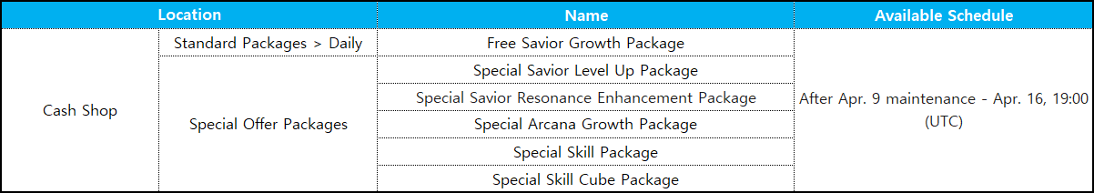 Guide your Star-kissed Saviors, StarSavior!Greetings, Captain! This is your Liaison Officer, GM Lisa.Here are the details for the update on Thursday, April 9.▣ Maintenance Time: Apr. 9, 01:00 - 03:00 (UTC) (2 hours)▣ Maintenance Impact: Game access unavailable during maintenance▣ Maintenance Rewards: 100 Stellagems + 2 Standard Savior Observation Tickets※ The contents of the patch notes are subject to change depending on the timing of the update.For more accurate details, please check in-game after the update.1. Savior Featured Observation▶ Savior ‘Elisa’ has been added to Featured Observation.Can be obtained through the in-game Observation > Featured Savior Observation menu.▶ Period: After Apr. 9 maintenance - Apr. 22, 19:00 (UTC)“I-I've been studying a lot by watching you, Captain.So this is... what a man steeped in sin looks like...!”A Saintess of the Monolith Order, ranked 117th.Elisa constantly gets dragged into Muriel's outrageous schemes.She regards her needlessly large figure as a complex,yet it only fuels the envy of those around her.2. Arcana Featured Observation▶ Elisa Arcana ‘Divine Trial’ can be obtained through the in-game Observation > Featured Arcana Observation menu.▶ Period: After Apr. 9 maintenance - Apr. 22, 19:00 (UTC)※ During a Journey, rewards may vary depending on the choices made in Journey Events.3. Cosmo Gate Galaxy Season 2Cosmo Gate Galaxy Season 2 begins.▶ Period: Apr. 9, 01:00 - Apr. 15, 19:00 (UTC)▶ Settlement Period: Apr. 15, 19:00 - Apr. 22, 19:00 (UTC)※ Cosmo Gate cannot be played during the settlement period.In Galaxy Season 2, ‘Demoraigis: Alpha / Beta’ will appear as Raid bosses.Challenge of the Stars will be in effect in Galaxy Season 2. 4. New Flash Point Content▶ Chief Kroon'nadoon / Void Annihilator have been added to Flash Point.▶ Each boss has up to 2 types of special Guidance Stones, consisting of a Main Reward Guidance Stone and a Sub Reward Guidance Stone.▶ Main Reward Guidance Stones are guaranteed to drop 1 upon clearing, while Sub Reward Guidance Stones can be obtained at a set probability.▶ The obtainable Main Reward Guidance Stones and Sub Reward Guidance Stones for each boss are as follows.5. Events5-1. A new ‘Dungeon Raiders’ event is now available under Main Lobby ‘Battle > Candle Square > Event’.Period: After Apr. 9 maintenance - Apr. 16, 19:00 (UTC)※ In this event, you can obtain various currency by clearing stages.※ The bonus reward ‘Definitely Not Stolen Treasure’ can be used in the dedicated Shop to obtain items needed for progression.5-2. ‘Dungeon Raiders Check-in’ event will begin.Period: After Apr. 9 maintenance - Apr. 16, 19:00 (UTC)5-3. ‘Flash Point Expansion Celebration Check-in’ event will begin.Period: After Apr. 9 maintenance - Apr. 22, 19:00 (UTC)6. Cash Shop Products- New products have been added to the Cash Shop.For more details, please check the Shop menu on the left side of the Main Lobby in-game.7. Improvements and Changes▶ Tactical Analysis max level has been expanded to 200. ▶ Improved the English text alignment for Mission Objectives on the Battle Results screen.▶ The requirement for using the chat feature has been adjusted to clearing Operation Sector 2-12.(※ This measure is to prevent abnormal use of the chat feature. We are sorry for the inconvenience.)▶ The icons for Apocalypse Support Box, Town Guard Support Box, and Candle Square Support Box have been changed.▶ The profanity filter list has been updated.\[Note]- The schedule may change depending on the update status. Any changes will be announced through this notice.- For mobile devices, data usage may be required to download the update upon reconnection. We recommend using Wi-Fi.Thank you.