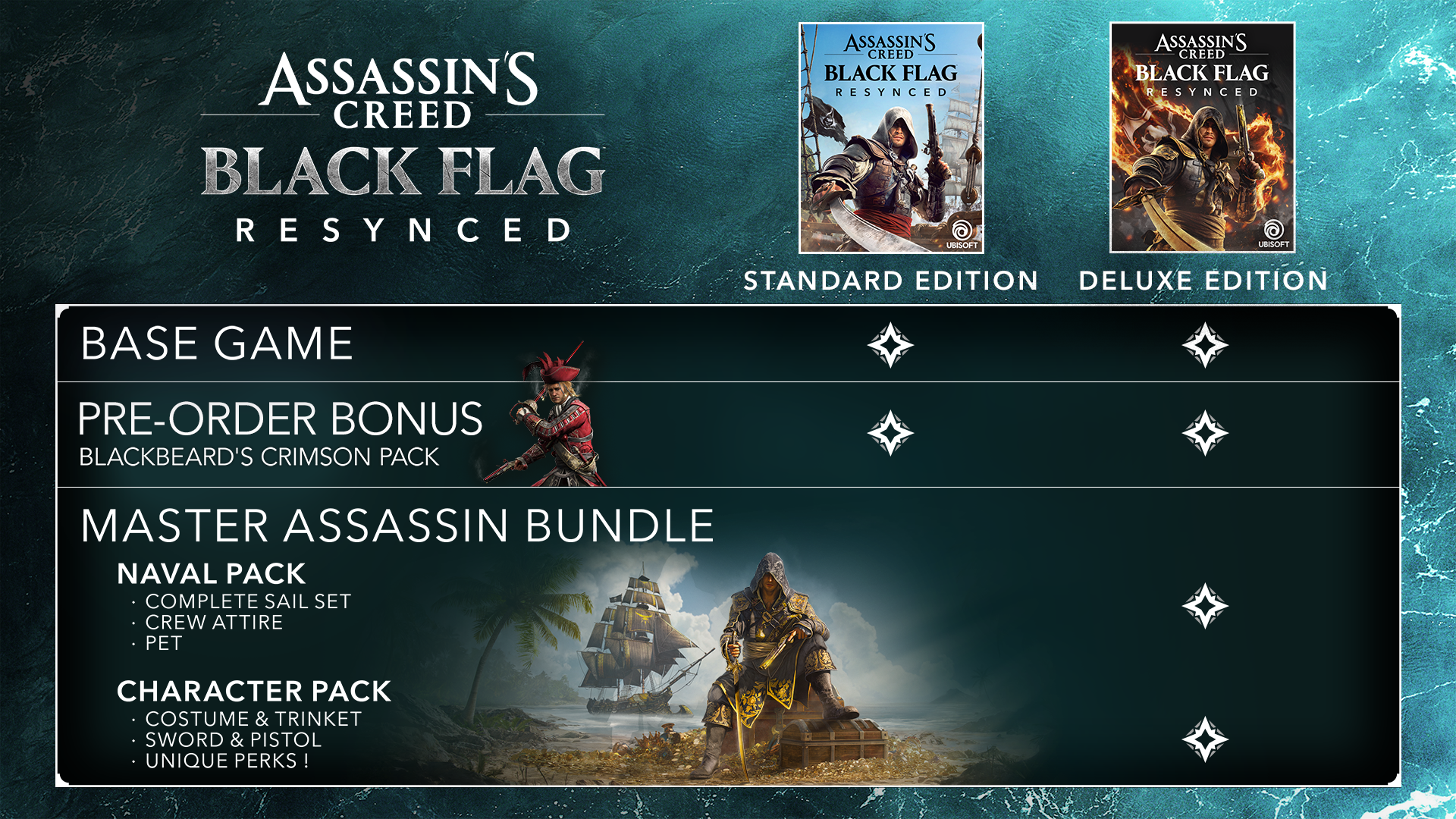 Assassin’s Creed Black Flag Resynced is finally on the horizon, and we’ve collected up all the key details you need before boarding The Jackdaw with Edward Kenway on his adventure through the Caribbean. We’ll cover release information on Steam, new content, PC specs, and more, so read on to find out everything you need to know.Assassin’s Creed Black Flag Resynced Release DateEdward Kenway’s is back in Assassin’s Creed Black Resynced when the game releases on July 9, 2026. 13 years after the original game’s launch, Resynced is a faithful recreation of Black Flag, enhanced in the latest version of the Anvil Engine featuring many improvements and new content and led by Ubisoft Singapore, with many of the original game’s developers returning to bring the game to the latest generation of hardware.You’ll return to the Caribbean to live the pirate life as the captain of the Jackdaw and experience the thrills and danger of explosive naval combat, cutthroat sword battles of the new and improved parry-driven combat system, a total visual overhaul that brings the beautiful tropical environment to life, and so much more. Take on the role of Edward Kenway on his journey from privateer to skilled Assassin and his fight against the Templars. You’ll relive Edward’s story, but in a world that‘s more immersive and realistic than ever before thanks to the latest technology and a team with a great passion for the game.You’ll be able to relive (or experience for the first time) Edward’s tale on Steam as well as on Steam Deck on July 9. More details will be shared later for the Steam Deck version.You can find out more and see the game in action right now:Worldwide Reveal Showcase – from April 23, the showcase hosted by Matt Ryan – the original and iconic voice of Edward Kenway who has returned to record brand-new lines for Resynced – shows off the game, dives into new gameplay features, features interviews with developers, and more.World Premiere Trailer – check out the trailer to introduce you to (or reacquaint you with) Edward’s adventure.Official Game Overview Trailer – watch the game overview for more details on what to expect from the Resynced experience.Be sure to check out the showcase for a special message from Woodkid, who crafted a reimagined track to mark Edward Kenway’s return.What’s new in Assassin’s Creed Black Flag Resynced?Resynced is the story you know and love from the original Black Flag, but the teams at Ubisoft have added brand-new content and enhancements across the experience.Discover just some of the new additions and enhancements to Resynced:Graphical and technological enhancementsBuilt from the ground-up on the latest evolution of Ubisoft’s proprietary Anvil engine, used in Assassin’s Creed ShadowsRaytraced Lighting with Global Illumination (RTGI) and reflections.Graphics assets built from the ground up to support Micropolygon and Physically Based Rendering (PBR) pipelines.Fully modernized water rendering and simulation.New and enhanced features, quests, and storiesLocate and assign new Officers to the Jackdaw, who each bring a special ability to naval combat.Playas have been reworked, offering new rewards and unique encounters on islands across the map.Additional missions and new scenes featuring Matt Ryan, Edward’s Original voice actor and the original cast.More customization options for the Jackdaw, including new skins and the all-new ship’s pets to bring along a cat or monkey companion while you sail.Reworked Kenway’s Fleet, which allows players to use captured ships to generate passive income through rare activities and trading, now available in the Captain’s Cabin and on all versions of AC Black Flag ResyncedThe old shanties are back, but are joined by a new set of 10 songs for your crew to bellow as you sail.Reworked action-adventure combat featuring:New visceral takedownsNew parrying mechanics Quick-fire rope dart and pistol movesA new enemy archetype – the DemolitionistNew and enhanced stealth gameplayObserve mode which extends Edward’s Eagle Vision.Crouch-anywhere lets Edward lower his profile anywhere on land.Dive-anywhere means Edward can stealthily approach seafront locations and ships.Shadows and low light will affect Edward’s visibility during stealth sequencesReworked naval combatNew secondary weapons have been added to try out in combat, including:Shrapnel barrels explode and damage enemy sails.8-pounders open up more weakpoints in enemy ship hulls.Enemy ships and factions reworked to add different equipment depending on their alliances.Enhanced parkour featuring moves like:Manual jumpSide ejectsHeight-gaining back ejectsQuicker interrupts between parkour movesDynamic weather and objectsWith Anvil’s Atmos system, the weather of the Caribbean becomes a character in its own right and brings the seas to life.Destructible objects react to weather and combat: signs that move and shift with the wind, ships’ sails billow and blow, coconuts roll across the ground in a storm, and objects break w