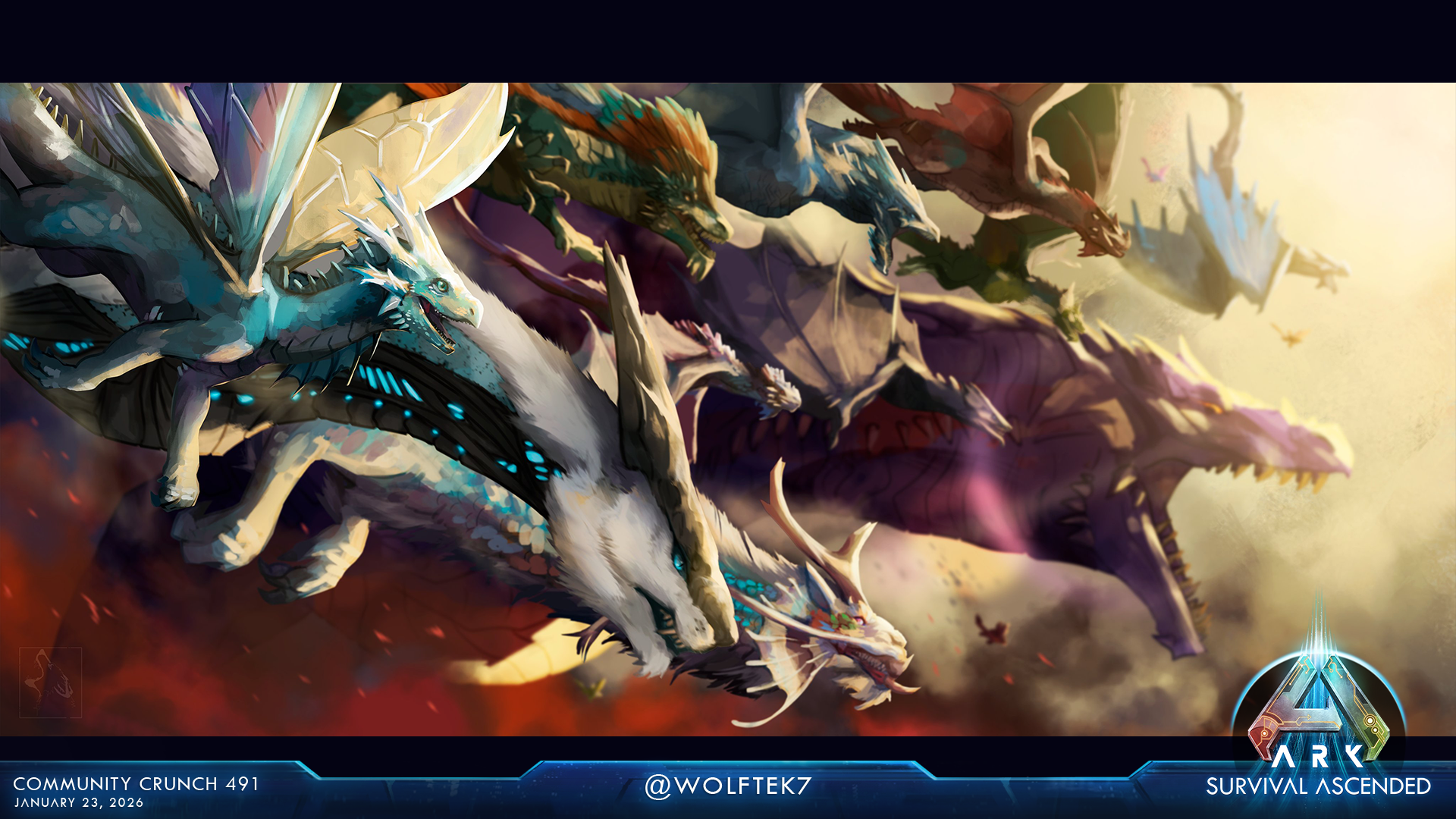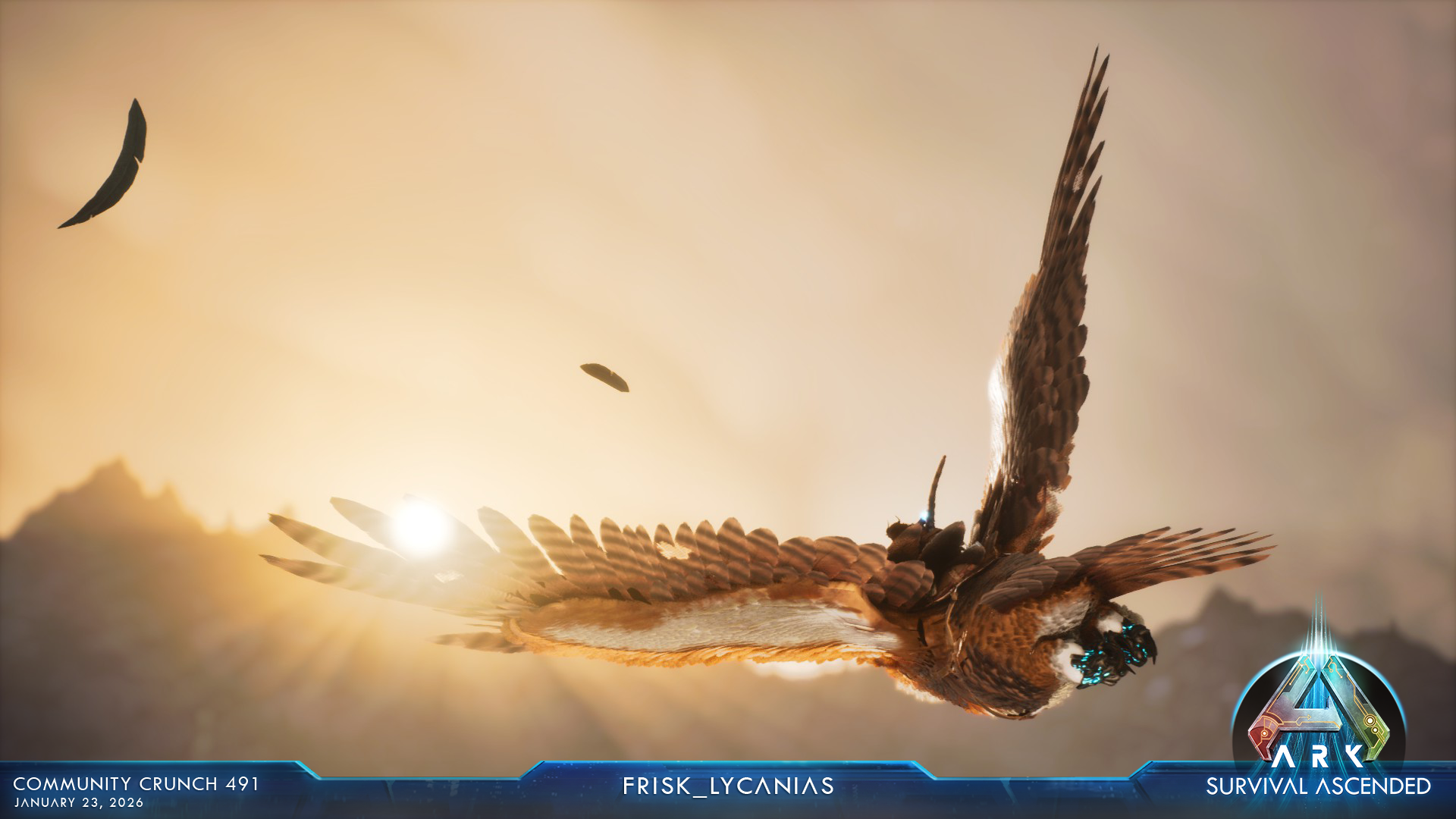 Astraeos expands in a big way on [color=#ffcc66]February 25th[/color] with the arrival of Pyranthos, a vast new desert landmass shaped by myth, ruin, and survival. Far from an empty wasteland, Pyranthos is a hostile, ancient region where shifting sands give way to forgotten structures, buried pathways, and environments designed to test preparation as much as curiosity. This is a place built for exploration, but it doesn’t reward carelessness.Download in full resolutionBeyond the desert itself, this update pushes Astraeos forward with new challenges across the map. Powerful creatures roam both the surface and the depths below, ancient forces stir in long-abandoned arenas, previously unexplored artifact caves beckon the curious, and new boss encounters await those ready to face them.This major Astraeos update launches February 25, introducing new explorable areas, boss fights, caves, and more. We’ll share more as we get closer, but for now, sharpen your blades and prepare for the heat. The desert is watching.Since we last checked in, the Live Ops team has been focused on closing out several high-impact post-launch issues and stabilising crashes and edge cases.We’ve resolved the issue affecting Outpost and resource cache spawning, and addressed possession-related problems, including cases where thralls could fall through the mesh when returning to players. We’ve also fixed an issue that could cause the Lost Queen encounter to fail with larger groups, and made it possible to participate in Outpost missions while possessing thralls.Alongside this, we’ve addressed an issue where replicators could be used to block Quetzals equipped with a platform saddle, preventing an unintended “cheese” setup that allowed for unfair PvP advantages. We continue to work through other reported quirks as they’re confirmed and locked in.Looking ahead, Gloon balance changes are coming next week. We’re also working through a character screen crash and additional map fixes, which are still in progress and will roll out with our next major version update..As always, thanks for the detailed reports. They’ve been instrumental in helping us prioritise and validate fixes as we move forward.MODSPOLIGHTLINKDownload & play new custom content created by players, including new maps, creatures, items, and game modes, through a dedicated new Mod-browser directly within the game. Enjoy an endless stream of new ARK content as the creativity and talent of the community is fully unleashed for the first time across gaming platforms and stay tuned as we spotlight more Cross-Platform Mods each week!This video features: Modern House by Weiyi_UE Eternal Chaos by IcyDog7272 Lost Knights Skin pack by Drunken Galleon Studio Fearsome Fashion by Jams_uWuSurvivor, the sun is setting on Arat Prime, and the war for the city is in full swing.This is no longer just about survival. It is about dominion.Three forces now clash for control of the Necrocene.We want you to bring that conflict to life, through the lens of your chosen faction.The Faction Art Contest begins.Pick your side, draw your allegiance, and help your faction conquer the Lost Colony.Voting Start: Friday, January 23rdWinners Announced: Friday, January 30thTo vote Head over to the [color=#6699ff]#lostcolony-submissions[/color] on the [color=#6699ff]Official ARK Discord[/color]. React with the [color=#ffcc66]golden check mark[/color] on the artworks you like best. You can vote on as many art as you want, but only reactions with the special [color=#ffcc66]golden check mark[/color] count!Best in ClassThe best artist for each individual faction. All Best-in-Class winners and runners-up will receive Lost Colony keys.The Grand VictorThe single artwork with the most [color=#ffcc66]golden check marks[/color] overall decides which faction claims the Discord.Grand Victor rewards include:Server Banner: The winning artwork becomes the faction’s pinned banner for the week.Exclusive Role: The Grand Victor receives a unique “Champion of the Lost Colony” role.The Grand Prize:TOTAL DISCORD SERVER TAKEOVER!The winning faction will conquer this Discord for a full week.Not an artist? You can still fight for your side.React to [color=red]this post[/color] with the emoji of your chosen faction in the ARK Discord to gain a special role.The faction with the most pledges at the end of the contest will receive a special community reward.This weekend, the Official Network will be receiving bonus rates! It will be active until [color=#3498db]Monday, January 26[/color]. [color=#3498db]PVP/PVE:[/color] 2x Harvesting, Taming, and Experience, and Breeding [color=#3498db]Small Tribes: [/color]4.5x Harvesting, Taming, and Experience + 4x Breeding [color=#3498db]ARKpocalypse:[/color] 5x Harvesting, Taming and Experience, and BreedingFan Art Gallery | Screenshot Gallery | Artist Feedback Form[color=#3498db]Creator[/color]: Mystic on ArkMystic shows you to get yourself a majestic Aureliax!YOUTUBE URL[color=#3498db]Creator[/color]: ClickTo