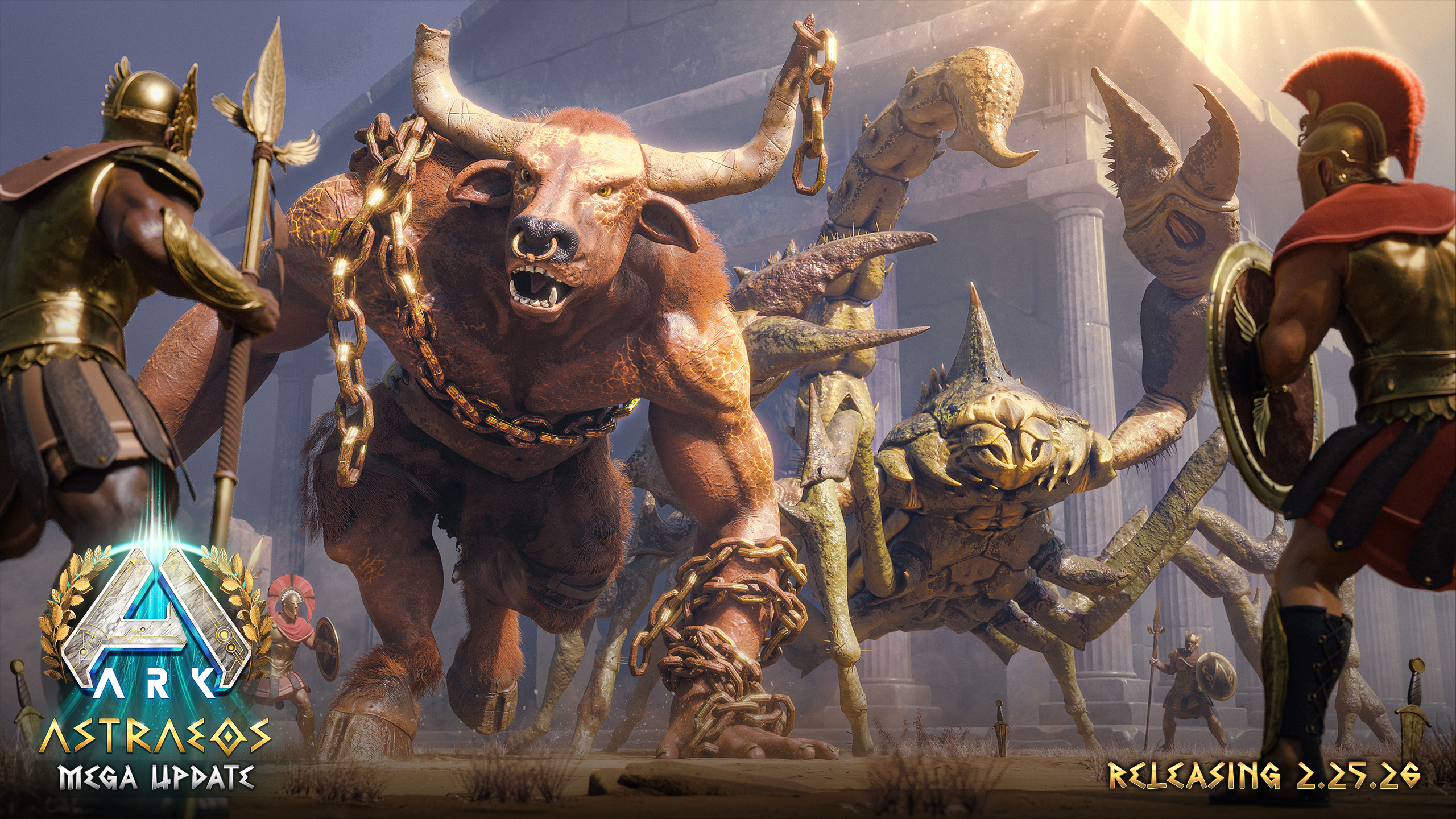 The dunes of Pyranthos are not getting any friendlier. Alongside the Deathworms you already know to fear, a new threat now prowls the sands: the Scorpion King and Queen. Massive and bloodthirsty, they are absolutely not something you want to stumble into unprepared.The desert doesn’t reward carelessness, and Pyranthos is happy to remind you.Download in full resolutionDeeper in Pyranthos, the caves hold something else entirely. The minotaur Minotarchos awaits new challengers, and while it doesn’t rely on flashy gimmicks, its strength is worthy of its myth.Those who bring it down will be greatly rewarded and one step closer to defeating the legendary Hydra. Consider it a test of raw endurance, and a warning that the ruins below are just as unforgiving as the sands above.Pyranthos mega update arrives on Astraeos on February 25th. Prepare accordingly. You’ve been warned, Survivors.MODSPOLIGHTLINKDownload & play new custom content created by players, including new maps, creatures, items, and game modes, through a dedicated new Mod-browser directly within the game. Enjoy an endless stream of new ARK content as the creativity and talent of the community is fully unleashed for the first time across gaming platforms and stay tuned as we spotlight more Cross-Platform Mods each week!This video features: Galaxy High-Tech Structure Skins by CyberTree The Seasons by Monark37 LF Dino Skin - Desmodus by LettuceFry1234 Xyphias’ Creatures: Vetulicolians by Xyphias The Island Reforged by Nekatus_Modding Birdwatcher’s Collection by EliteDodo ARK Abi’s Ultimasaurus Remaked by AbichanExpire servers are temporary servers across the network that will eventually be removed, and you can find them by searching for [color=#3498db]"Expire"[/color] in the session filter.These servers will be online until 10 am PST / 1 pm EST on March 2nd. We're preemptively using our allocation for future maps to host some additional sessions that players can travel onto to farm, tame, and experience the newest content Gameplay. The same transfer restrictions apply in that you are only able to download your character, but you can freely take anything off. This is to help reduce load off some of the other servers, or provide players an option for those who just want to jump onto a new map temporarily.Please note that [color=#3498db]these servers will no longer exist after 10 am PST / 1 pm EST on March 2nd[/color], so if you intend to use them, remember to transfer your items/creatures/characters off before that date, as nothing will be saved beyond that time period.This weekend, the Official Network will be receiving bonus rates! It will be active until [color=#3498db]Monday, February 23[/color]. [color=#3498db]PVP/PVE:[/color] 2x Harvesting, Taming, and Experience, and Breeding [color=#3498db]Small Tribes: [/color]4.5x Harvesting, Taming, and Experience + 4x Breeding [color=#3498db]ARKpocalypse:[/color] 5x Harvesting, Taming and Experience, and BreedingFan Art Gallery | Screenshot Gallery | Artist Feedback Form[color=#3498db]Creator[/color]: The OutcastsHow well do you know your ARK maps? The Outcasts is about to find out!YOUTUBE URL[color=#3498db]Creator[/color]: StorminitIn this video, Storminit showcases the S-Variants mod, which gives a glow-up to many creatures without affecting gameplay difficulty.YOUTUBE URLFor every survivor before us by @alkonavi Kawaii Gloon by @kinosei_x2 GLORY TO THE HYPNOGLOON by hypnotoadish Neophyte Flag by nezuyu Tiny helicopters everywhere. by tacimur It's hard to ride the Aureliax by yuukuro07 Ossidon by one_trublu Photo Mode by takeritaketakeko Photo Mode by stinkerrr_ I love having my Rock Drake on Lost Colony by arrynhellfire Photo Mode by savkyn SUBJECT-Meraxes by @HotaruIkaMC Enjoy your weekend!Studio WildcardTwitter: twitter.com/survivethearkDiscord: discord.com/invite/playarkReddit: reddit.com/r/playarkInstagram: instagram.com/survivethearkTwitch: twitch.tv/survivethearkSteam: steamcommunity.com/app/346110Youtube: youtube.com/survivethearkFacebook: facebook.com/survivethearkThreads: threads.net/@survivethearkOfficial Wiki: https://ark.wiki.gg/wiki/ARK_Survival_Evolved_Wiki
