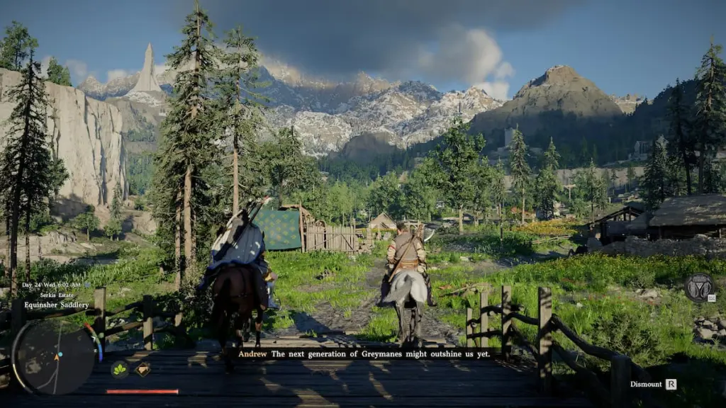 Each moment spent on horseback is a moment to remember. Screenshot by Destructoid The overall story quality is strong. Initially, the game suffers from a huge disconnect between the quests, and it is hard to keep track of what is actually going on. You frequently switch from sci-fi to medieval fantasy, and that doesn't help maintain coherence or consistency in tone and atmosphere whatsoever.After the first few hours of that, once Kliff starts making progress in rebuilding the Greymanes, everything starts falling into place, and tone is seldom broken by any sort of narrative digression.
