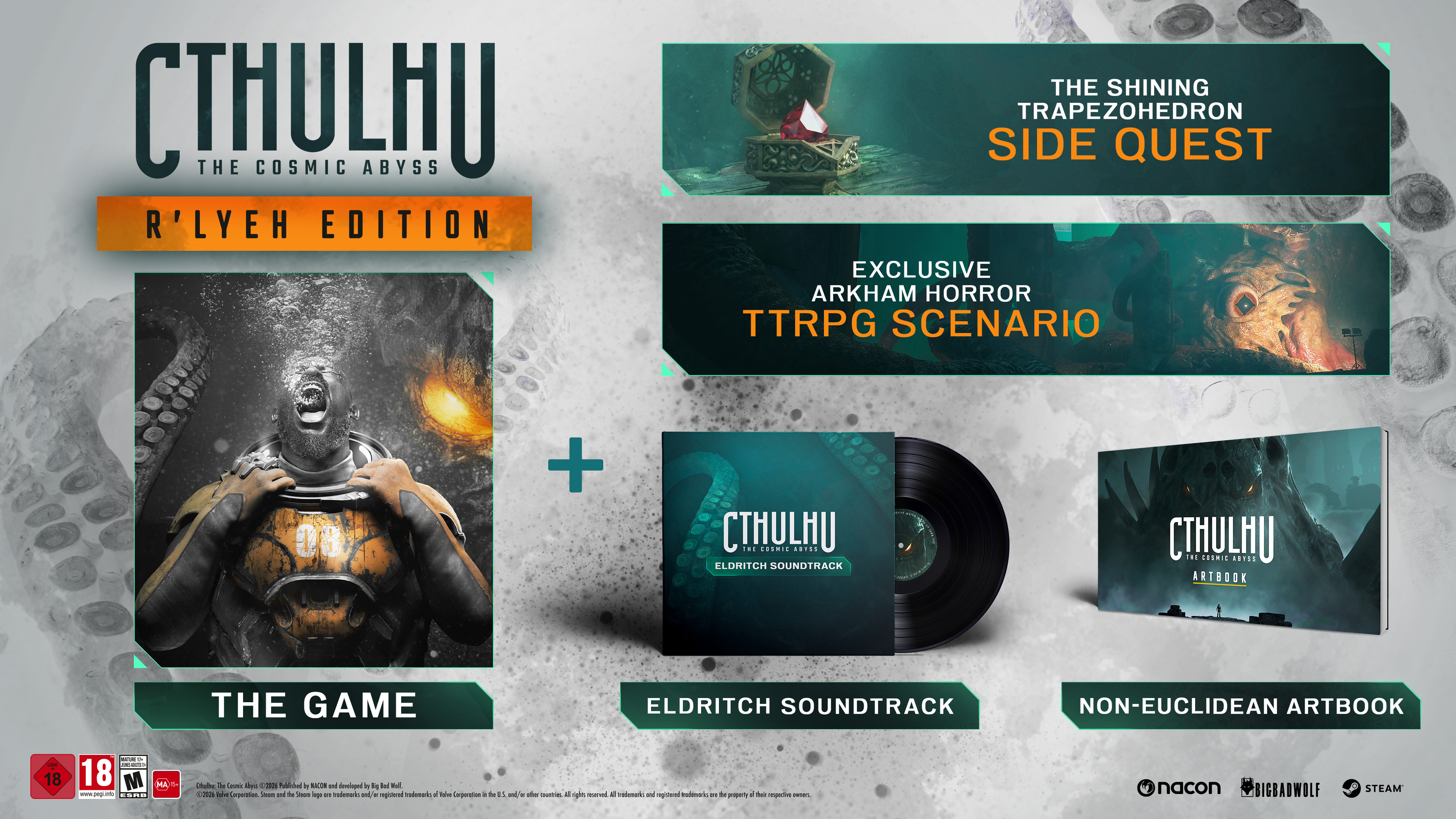 The abyss is calling… and it knows your nameNacon and Big Bad Wolf are beyond proud and excited to finally share their work with players around the world.Cthulhu: The Cosmic Abyss is now available on Steam! A word from Big Bad Wolf's teamWhat a long way we've come since that completely crazy pitch that took us on a 3-year journey... We often hear that releasing a game is a miracle, and this principle was confirmed once again with this project.Indeed, as is often the case, the last few months of production were not the easiest for the studio. The difficulties were not without their impact on us, but that didn't stop us from giving our all.We want to particularly thank our team for their flexibility and motivation, as well as everyone who continued to support us on the project. We are very proud of what we have accomplished together!Now the time has finally come to pass the controller to you! It's your turn to embody Noah, detective of the occult, and dare to descend into the depthshttps://store.steampowered.com/app/2760560/Cthulhu_The_Cosmic_AbyssTake on the role of Noah, an agent sent to investigate the mysterious Ocean-I underwater station. But this is no ordinary mission. It is a descent into a world that defies logic, a journey to the heart of an ancient mystery where every clue threatens to unravel your sanity.Explore the depths of a submerged facility hiding unspeakable secretsInvestigate, analyze, and reconstruct the truth using your tools and your mind Face psychological horrors that will challenge your perception of reality Make choices that will shape Noah’s fate and lead to multiple endingsIn R'lyeh, all dreams end.There are no weapons. No easy answers.Only your instincts… and the creeping presence lurking in the dark. As you descend deeper into the abyss, your mind will be tested. Hallucinations, distortions, and impossible visions will blur the line between reality and madness. Buy the game now and get the exclusive content "Sanity Pack", available until April 30th. Don’t wait until it sinks into the depths.Will you uncover the truth… or lose yourself to it?If you are not afraid of what lies beneath, you can dive deeper with the R’lyeh Edition.The R’lyeh Edition includes:The full gameEldritch SoundtrackNon-Euclidrean ArtbookThe Shining Trapezohedron Side QuestExclusive Arkham Horror TTRPG scenarioEvery step you take brings you closer to the truth… and further away from reality. There is no turning back now.The gates of R’lyeh are opening.https://store.steampowered.com/app/2760560/Cthulhu_The_Cosmic_Abyss/Follow us on Cthulhu: The Cosmic Abyss Socials: Cthulhu: The Cosmic Abyss' socials: Discord ► https://discord.gg/Nhz2grcx39X (Twitter) ► https://x.com/PlayCthulhuCAReddit ► https://www.reddit.com/r/CthulhuTheCosmicAbyss/TikTok ► https://www.tiktok.com/@playcthulhu Big Bad Wolf's socials: X (Twitter) ► https://discord.gg/Nhz2grcx39Website ► https://discord.gg/Nhz2grcx39Reddit Twitter Discord