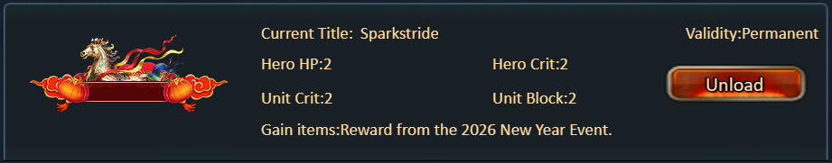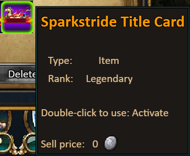 Consume 10,000 gold coins: Sparkstride Title Card*1, Solar Chest (Legendary)*2. Pet Pleasure*1