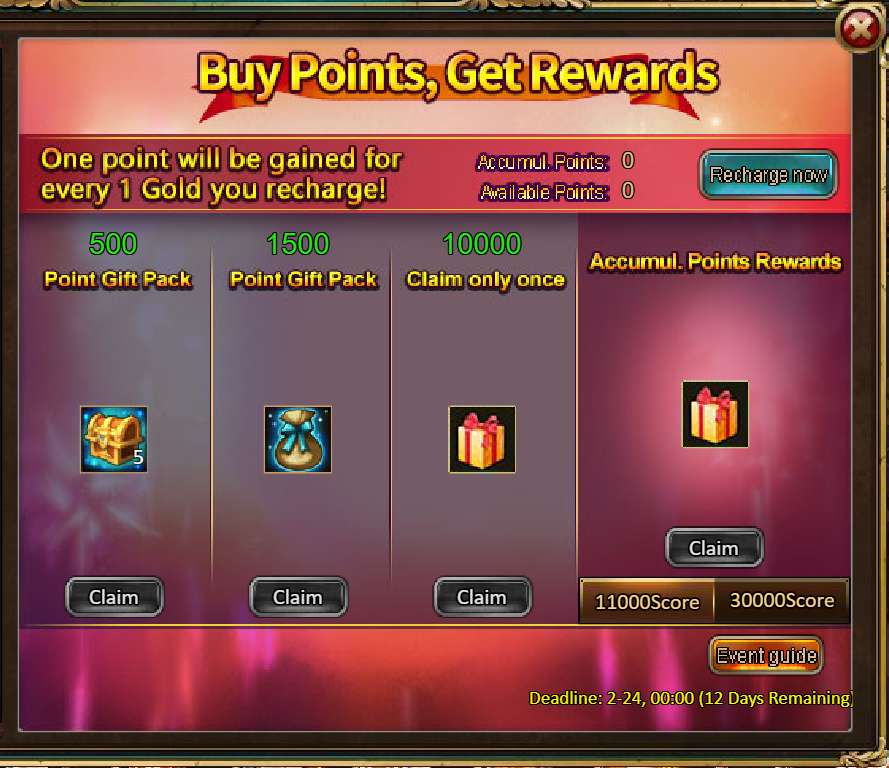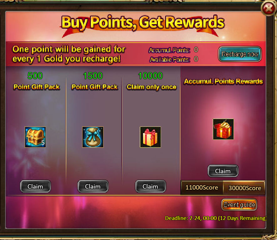 4.Buy Points, Get Rewards: 11000 - Legendary Nian Beast Chest (contains Nian Beast (Legendary)*1, Farewell to the Year (Legendary)*1) *1 / 30000 - Godlike Nian Beast Chest (contains Nian Beast (Godlike)*1, Farewell to the Year (Godlike)*1) *1