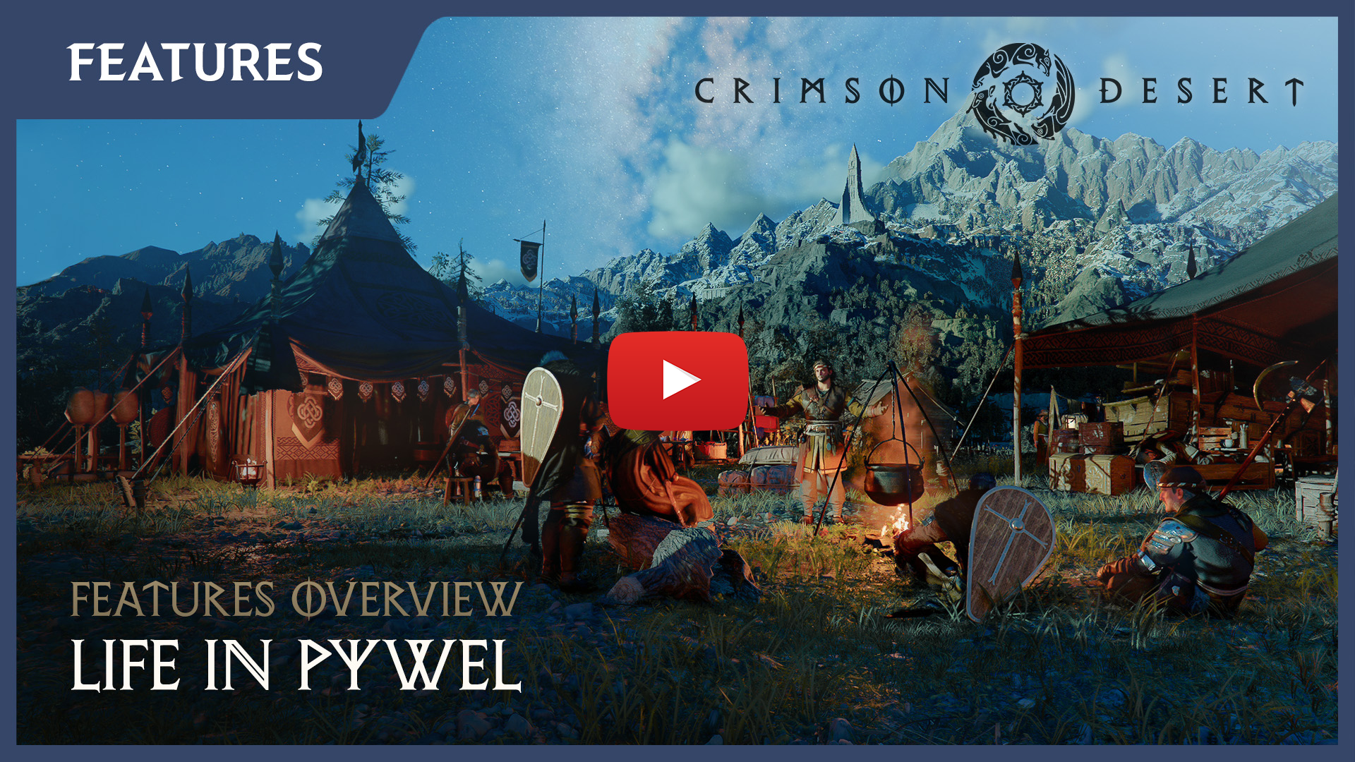 The final episode of the Features Overview series is out now!In this episode, we shift focus to life between the quests and battles.From the Greymane camp that anchors your travels to the various activities that support your adventures, we take a look at some of the things that shape your day-to-day life in Pywel.We hope that the Features Overview series has given you a better understanding of Crimson Desert.Thank you for watching, and we’ll see you soon in Pywel!