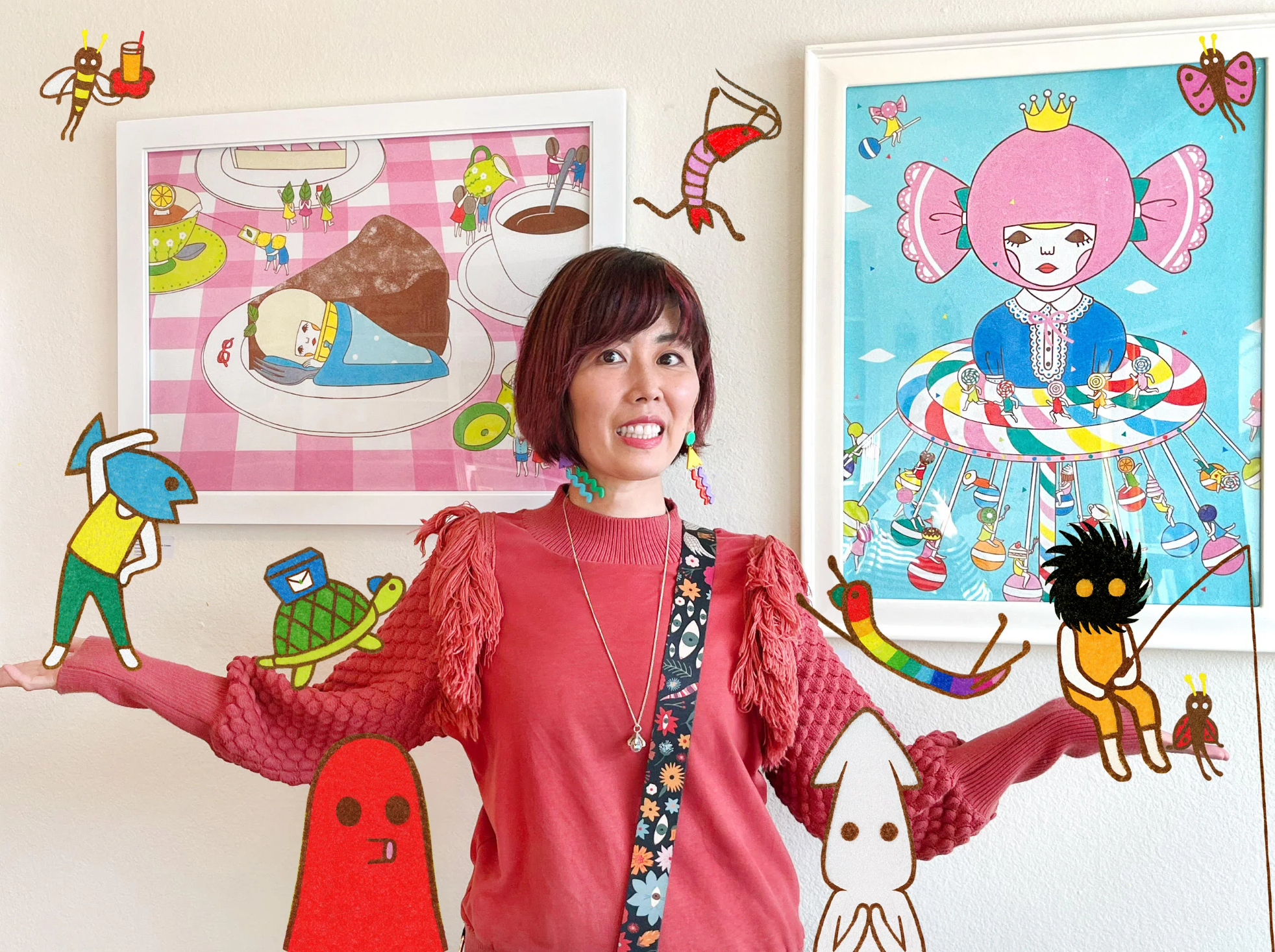 Jun loves drawing strange and unusual creatures. Her character design was inspired by eerie folklore and Junji Ito, the renowned horror manga artist from Gifu.