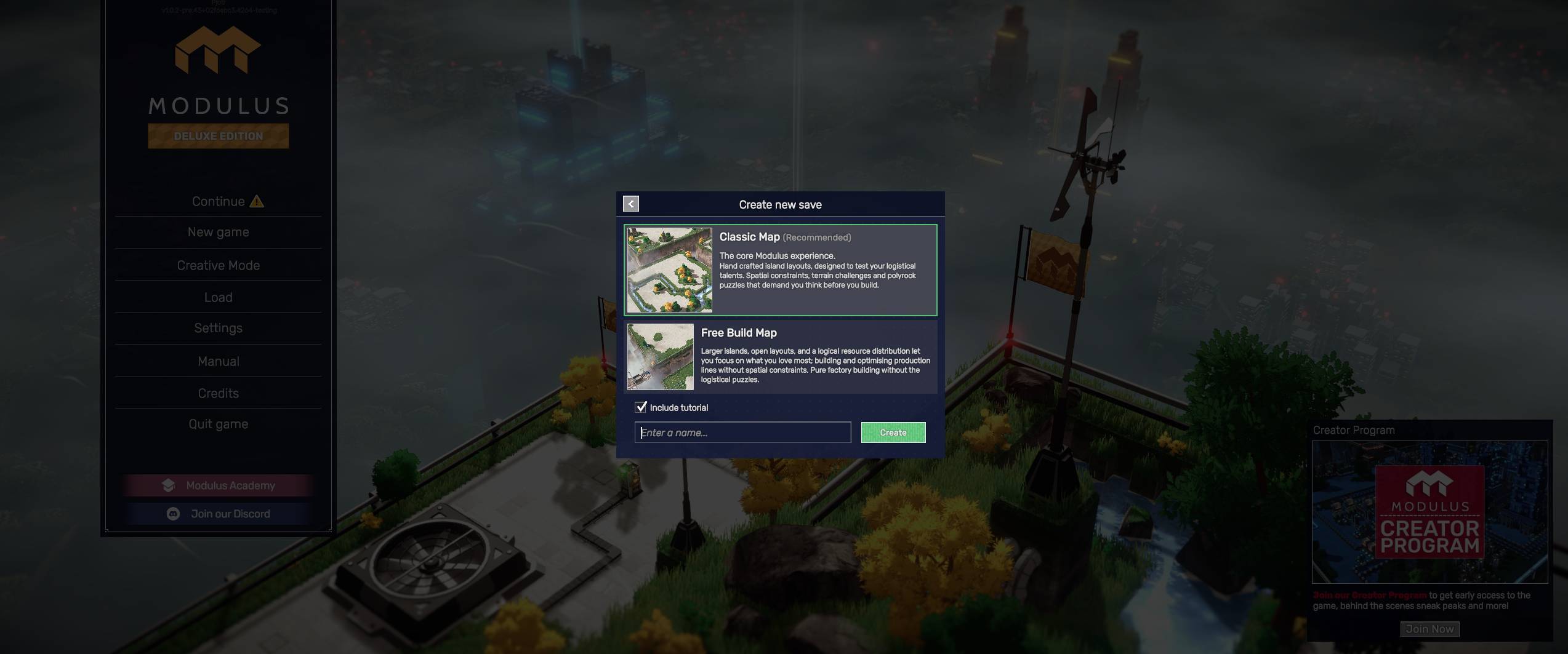Hey Modulue MakersFirst up WOW. Thank you from the bottom of our hearts for such an incredible launch week. Your excitement and enthusiasm around the game means more to us than we can put into words. Seeing everyone sharing screenshots, giving each other advice on optimal layouts, and just generally being as excited about the game as we are, has been absolutely awesome.We have been listening to feedback and monitoring the Feature Upvote Board for your most requested suggestions and have begun putting a plan together to decide what's next for Modulus. There has been one particular suggestion that has come up a fair few times in reviews and forum posts, and that is to give players a way to build without the terrain constraints present in the campaign. Whilst the puzzle aspect of designing a factory around these constraints is intended, and is the recommended way to play Modulus, we do get that it isn't for everyone. We hear you when you say you want to build, copy, and blueprint more easily.So we're adding a new map that lets you do exactly that.Introducing the Free Build MapIn the coming weeks you'll get the option to choose between the Classic Map (recommended) and Free Build Map which gives you:Larger islands: more room to build and expand your production lines the way you want toLogical Polyrock layout: resources distributed in a way that makes sense for how you want to build, not against itNo terrain challenges: a more open, traditional factory experience for those who prefer it[carousel][/carousel]The original map isn't going anywhere. If you love the spatial puzzle and the constraint of the island terrain, that experience is exactly as it was. This is simply a new way to play Modulus, and we think it opens the game up to a lot more players.Also in this update: A small but important tweak to the tutorial: we’re telling players more clearly that belts can run through miners. The hologram will now show the conveyor running through the miners, with updated text to match, as well as in front of them. A minor fix, but one that should make those first few minutes a lot clearer. We'll have a release date for the map update soon. In the meantime, let us know what you think and if there's anything else you'd love to see in a future update, drop it on the Feature Upvote Board.- Team Happy Volcano