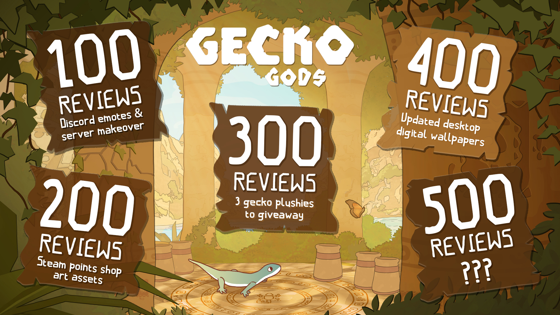 But wait! There’s more. Every review that you leave goes towards unlocking a reward on the review roadmap below. From Steam Points Shop items to Gecko plushies, your reviews help improve and shape the future of the Gecko Gods community. Leave your review here now.