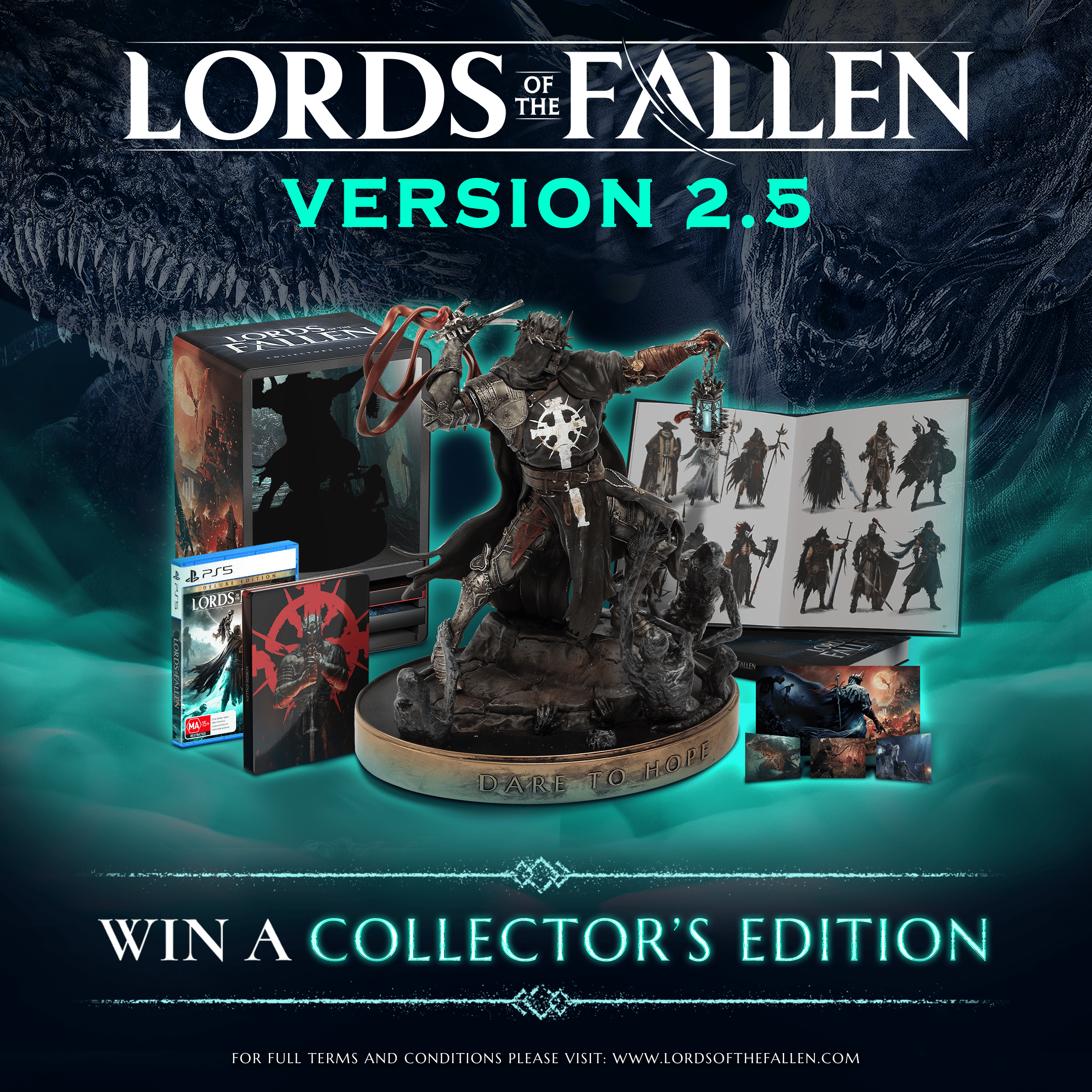 Greetings Lampbearers,We’re giving one member of our community the chance to win a Lords of the Fallen Collector’s EditionHow to enter:• Share the giveaway post on our social media channels• Tag a friend in the comments under the postTerms and conditions In Light, We Walk