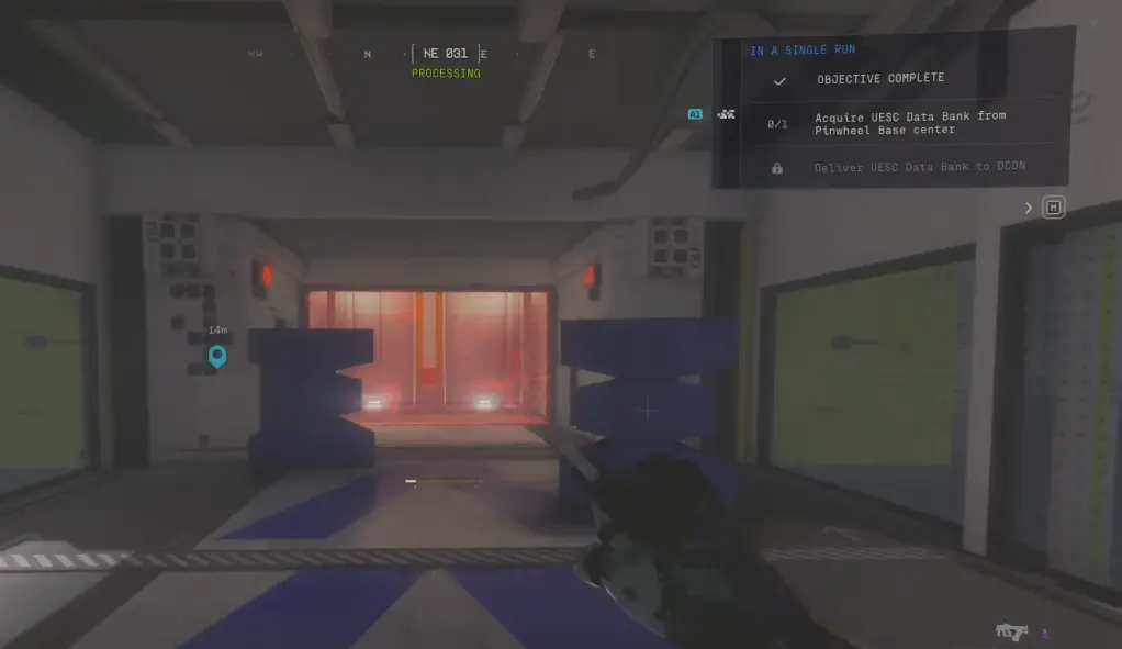 Screenshot and remix by Destructoid The first task is relatively easy to complete (compared to the second task). Head to the Processing POI and take the stairs to the roof. Drop to the lower level of the roof, and you'll find a couple of UESC Ghosts. Shoot them down, and you'll get the two UESC combat data to add to your inventory.