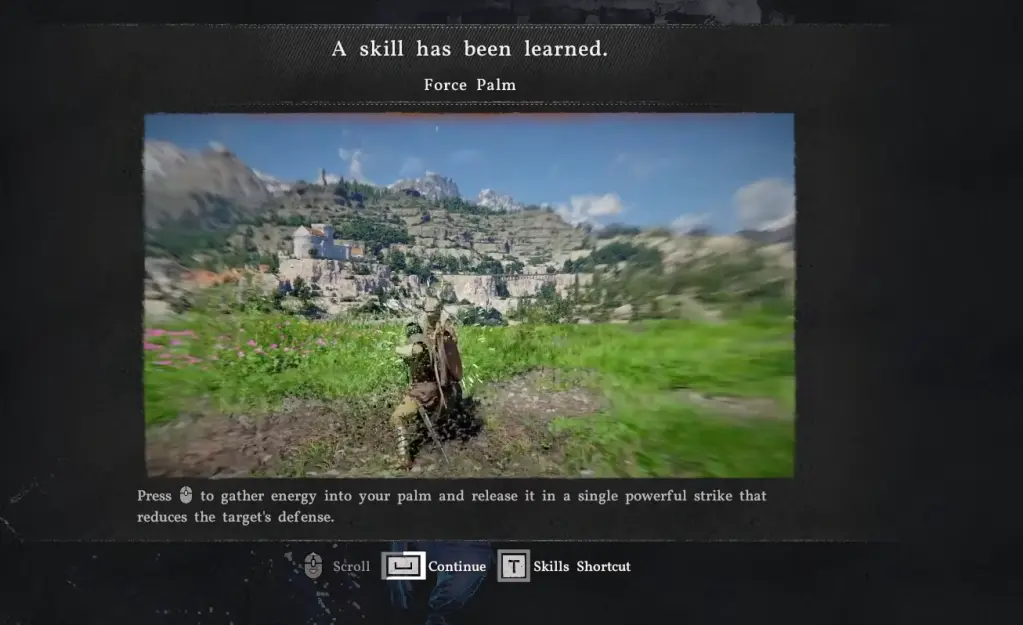 Image via Pearl Abyss - First, approach the wall socket, and press the L1/LB/Ctrl button to "observe" the ghostly figure. This step acts as a tutorial for learning the Force Palm skill.