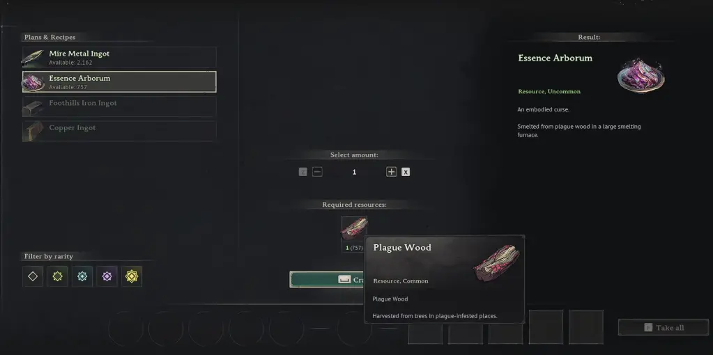 - Two Essence Arborum: You'll first need a Large Smelting Furnace and and Plauge Wood. Place the Plague Wood in the Furnace, and it will convert the item into Essence Arborum.