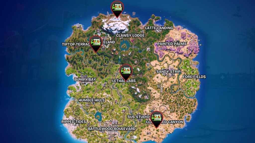 Screenshot by Destructoid Repeat the same process once more at one of the other available quest locations to finish this mission. Any two spots included in this quest work, but if you want to get it done as quickly and efficiently as possible, I recommend visiting the signs of The Seven at the Storm Station Landmark and the area between Tiptop Terrace and Wonkeeland. These two spots are the closest to one another, and also generally the least populated. The other two spawn spots are at popular, main POIs with lots of loot, which means you'll often run into many enemy players there. To ensure you're able to focus solely on this quest, it's best to avoid the Lethal Labs and Classified Canyon logs in favor of the other ones.
