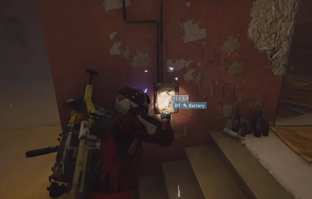 Image via Embark To complete the repairs, you'll have to use a battery. Next, you'll find a set of stairs to your left. The stairs will lead you to a broken switch on the left wall. To repair the switch, use a battery.Once the switch and the speaker are repaired, you can interact with them. When you interact with the switch, it will activate the disco ball. To play music, interact with the speaker. That's pretty much how you can turn the place into the '80s and groove along. Unfortunately, there are no rewards to obtain, which is a shame.