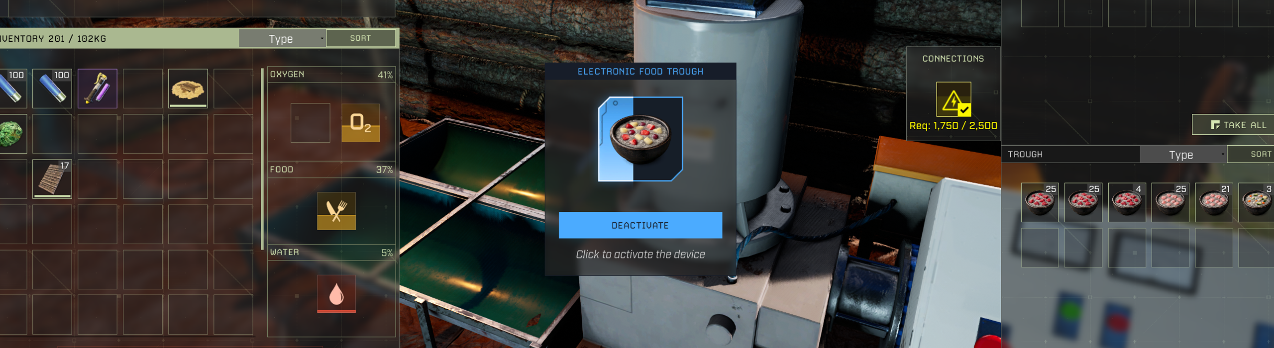 The electric food trough and omni-feed have received an overhaul. Previously, omni-feed granted 200 food to animals and stacked to 100, making it quite powerful - especially since it could be crafted from any plant or meat based item.