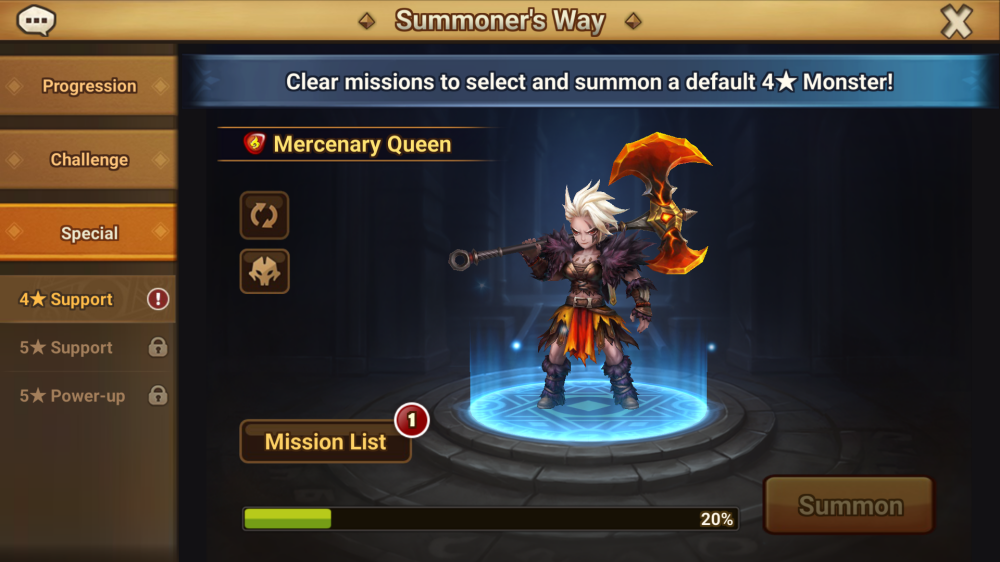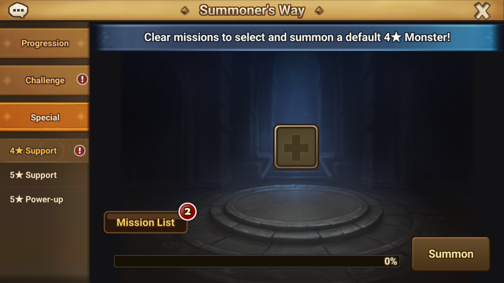 This is the screen you see when entering the \[Special] tab in Summoner's Way.