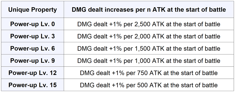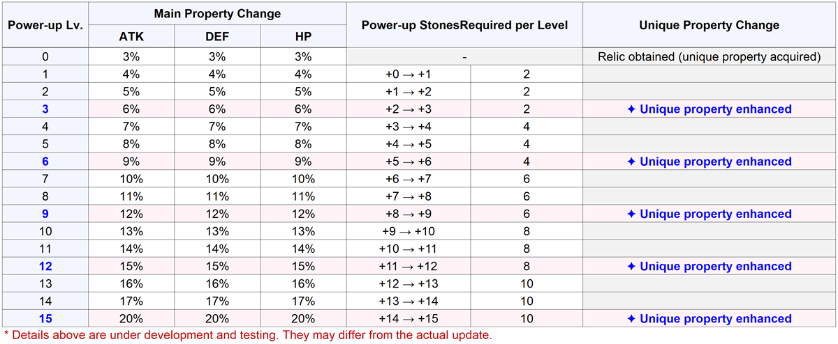 To help you understand, we've prepared a table showing the values for each Power-up level.