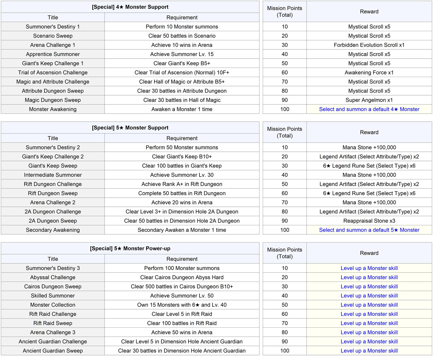 Please note that missions for reaching Summoner Levels, clearing the Trial of Ascension, and owning 6★ Lv. 40 Monsters will be applied retroactively.