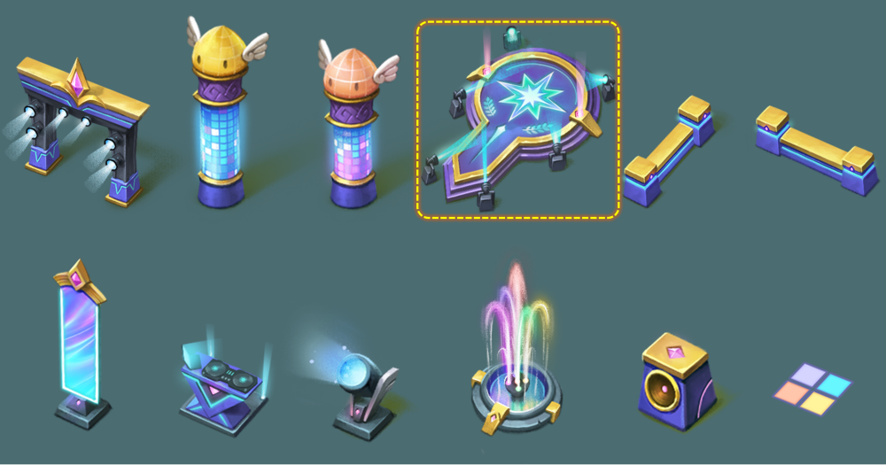 The stage-shaped decoration item in the center of the image is particularly noteworthy.