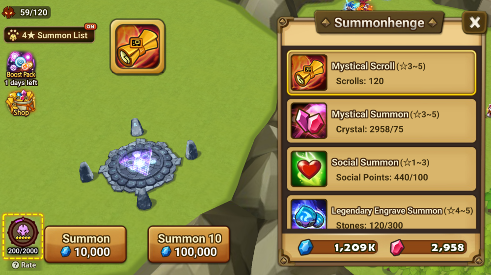 Here is a look at the Summonhenge screen with the added Summon Mileage.
