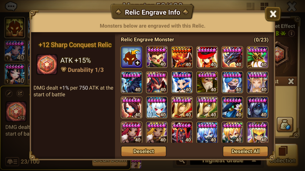 As mentioned, since one Relic can be applied to up to 100 Monsters, it would be a good strategy to group your Monsters in advance.