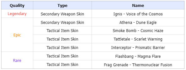The limited-time "Voice of the Cosmos" is now open! Navigators can use "Ocean Beacons" to perform draws, with a chance to obtain: Legendary Secondary Weapon Skin "Voice of the Cosmos", Legendary Action "Astral Ascension" and 5 Tactical Item Skins: Flashbang – Magma Flare, Frag Grenade – Thermonuclear Fusion, Smoke Bomb – Cosmic Haze, Tattletale – Scarlet Warning, Interceptor – Prismatic Barrier and other exciting rewards!