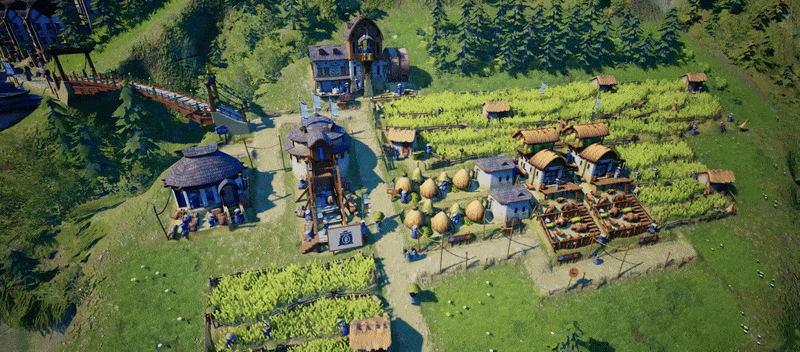 With that established, it was time to start the grind: while Pirat worked on the first, simplified versions of the 3D assets, I adjusted my technical prototype to support building on multiple, angled slopes. Things were starting to come together: you could actually play the game on a mountain, for the very first time! We were figuring out things like the caste system, what buildings we needed in the game, what resources they were producing or processing, etc. The game was slowly but surely taking shape.