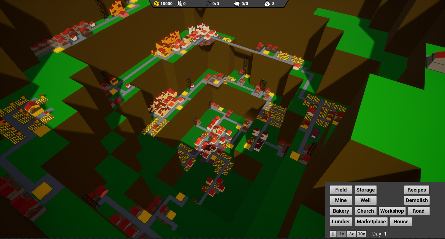 Well, I’m sure you won’t be able to tell, but I’m not an artist. This was a pretty bare-bones, but functional technical prototype of a city-building game. It had mechanics like resource production, transportation, and distribution to citizens living in houses. It also had an element of verticality: at some point, I thought it’d be cool if you could build on multiple levels, because why not?