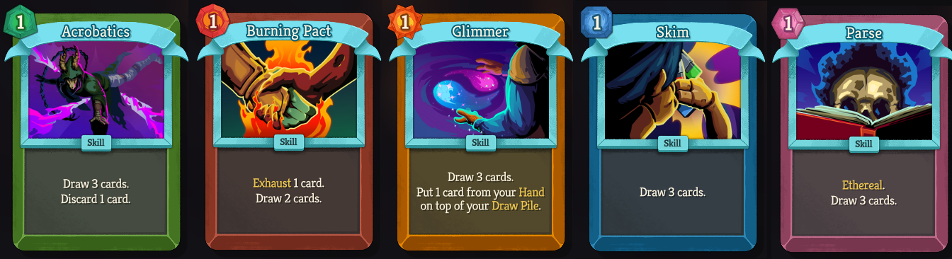 The Silent's Blade of Ink card has been reworked to generate Shivs enchanted with Inky - "This card deals 2 additional damage and applies 1 Weak." Her classic Acrobatics card has been changed from Common to Uncommon, bringing it more in line with the other cards in its family: Skim, Parse, Glimmer, and Burning Pact. She's also seen a few other buffs and nerfs. Our goal is to make Sly builds less overly dominant while making sure they still feel satisfying.