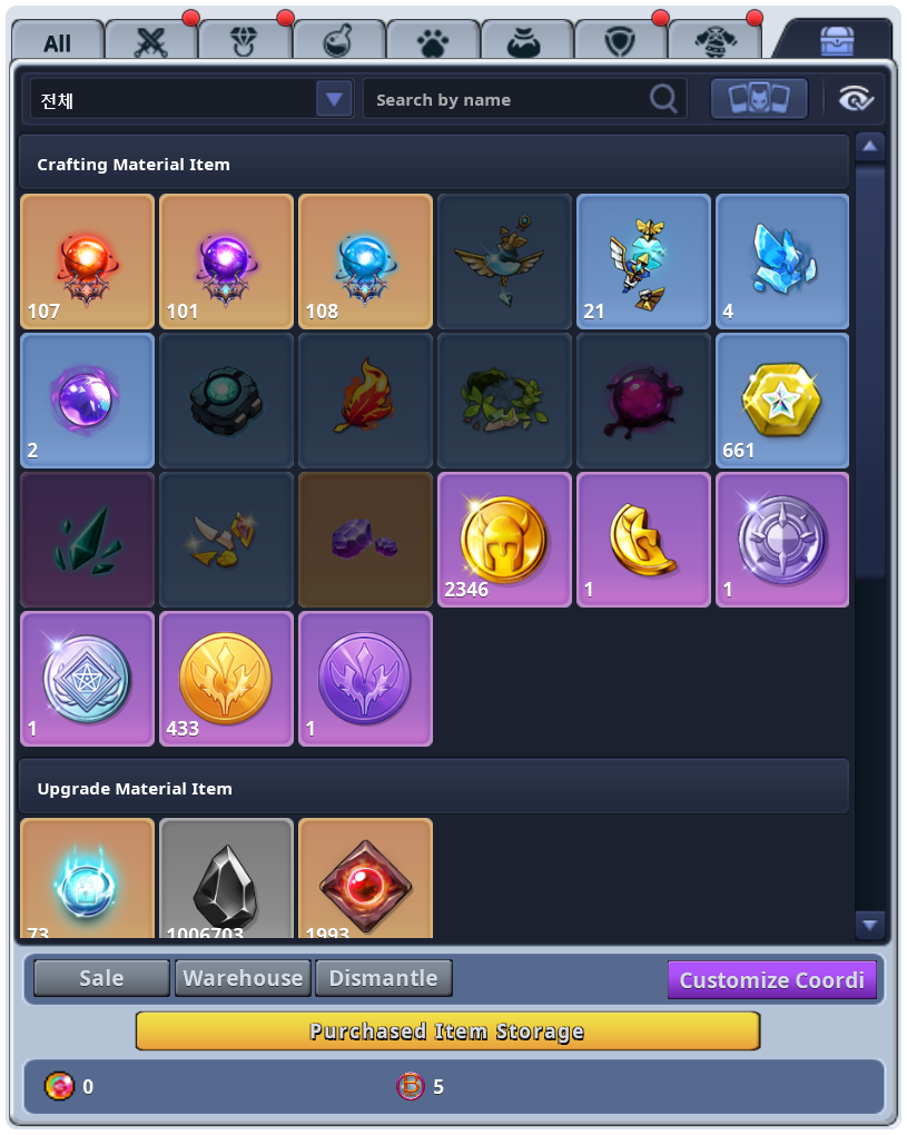 - A new [Expedition Party Warehouse] menu will be added on the upper right tab of the character inventory screen.