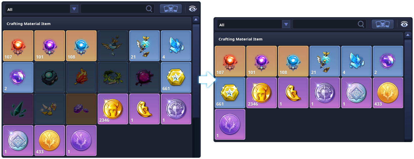 - Previously, items were stored separately across each character’s Inventory / Aernas Storage.