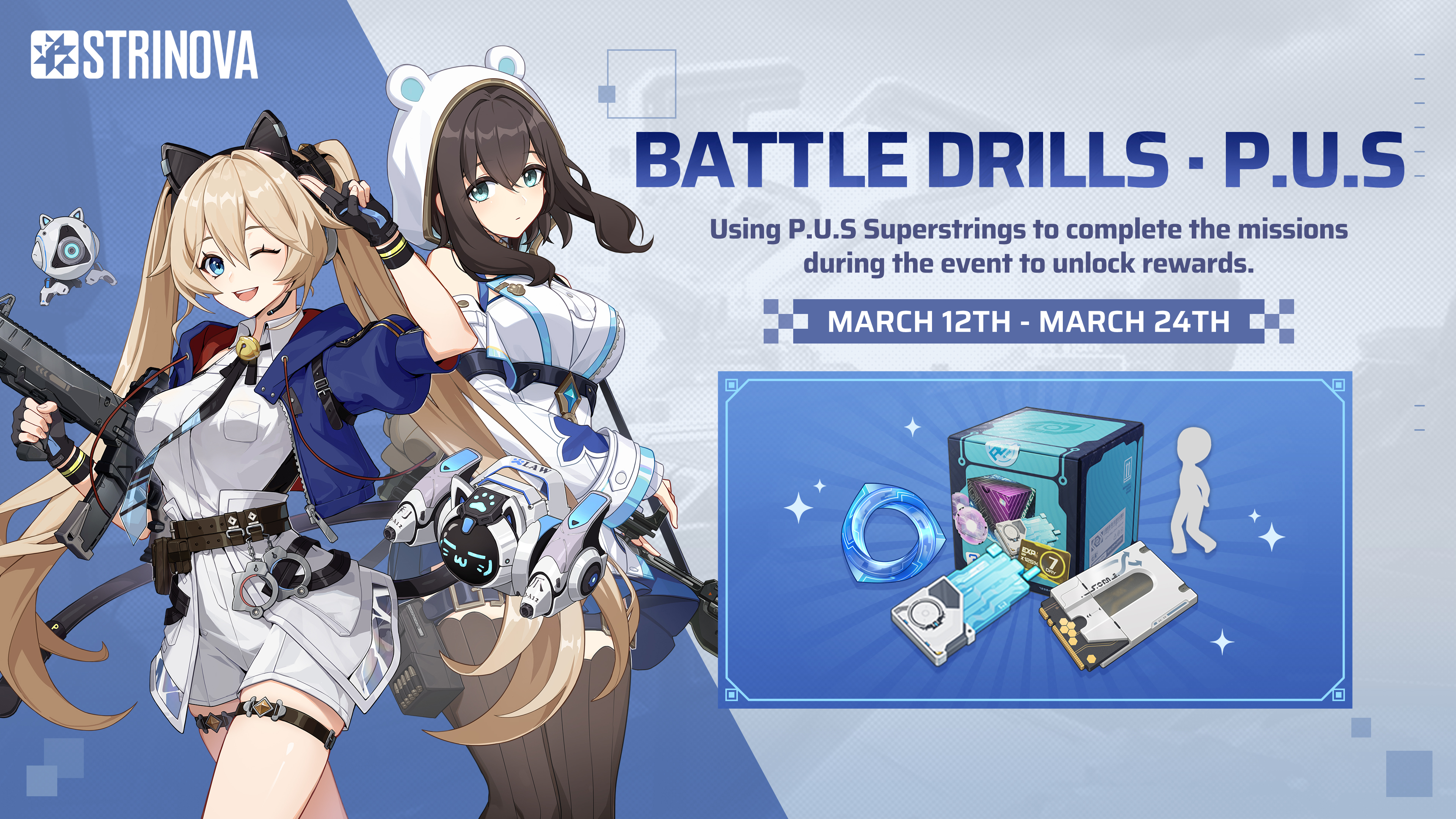 Navigator,This monthly version update will use \[No-Downtime Maintenance].During maintenance, you can still log in normally and join matches, but the server may experience brief fluctuations. Thank you for your understanding.After maintenance ends, the system will prompt you to \[Update Game]. Follow the instructions to update your client to the latest version, then log in again to enjoy the new content.If you're in a match when maintenance finishes, you'll receive the \[Update Prompt] after the match ends. Your gameplay won't be affected.If you exit the game before maintenance ends and click \[Update] afterward, you may not be able to reconnect to your original match. Please plan your playtime carefully to avoid disrupting matches.Maintenance duration may change based on actual conditions. If an extension is needed, we'll notify you in advance. Thank you for your support!▽Update Time:March 12, 00:00 AM - March 12, 07:00 AM UTC+0▽Update Scope:Strinova Open Beta Servers▽Maintenance Compensation:Dream Token x100, Basestring x100▽Update Content:Map UpdateOutbreak map: Abyssal FrontierNear the edge of the String Sea rift, a forgotten fragment of spacetime marked by ancient civilization was discovered. Drawn by the promise of lost knowledge, the Superstrings entered this realm beyond the main world—and awakened a dormant nightmare.Gameplay UpdateOutbreak UpdateCard Adjustments:Armor Forger: Increased stack limit, up to a maximum of 1000 stacks.Crystal Analyzer: Superstring gains experience only within a 10m radius.Enhanced Ignis: Improved scatter, ammo capacity increased from 180 to 270 rounds.Crimson Demise: Effect duration increased from 30 seconds to 180 seconds.Fury: Damage boost increased from 8%/12%/20% to 10%/20%/30%, duration extended from 40 seconds to 180 seconds.Beacon of Hope: Explosion radius slightly reduced.Power Vacuum: Damage increase per upgrade boosted from 30% to 40%, HP and Armor increase from +350 to +450 each.Energy Recycle: Essence duration increased from 20 seconds to 120 seconds.Rule AdjustmentsAfter collecting 6 Evo Crystals and Supply Crates in a match, subsequent collections will share some EXP with teammates. This count resets after faction change.The maximum level for each Crystalline and Superstring is 1000.Balance AdjustmentsFreedom Reign, Chroma, Dawn, Surfbreak, Ignis, Athena can auto-fire by holding the fire key in Outbreak mode.KanamiUltimate Skill point requirement increased from 6500 to 7000.MingActive Skill explosion damage increased from 250 to 300, and ongoing damage from 100 to 120.Tactical Skill damage increased from 350-100 to 400-115.Ultimate Skill armor absorption raised from 40% to 50%.ReiichiActive Skill cooldown reduced from 45 seconds to 30 seconds, and base damage increased from 200 to 300.The damage boost of Awaken 2 and Ultimate Skill increased from 200 to 300.CielleActive Skill shield increased from 1600 to 2000, with a recovery rate of 200 per second.Before the shield is broken, all damage is absorbed by the shield (activating Awaken 2 does not negate this effect).Without activating the Ultimate Skill, crashing into Crystallines deals damage; activating the Ultimate Skill amplifies this damage.Awaken 2 no longer detonates the shield, allowing unlimited use before the shield is broken.Map Workshop UpdateDoor switch states are clearly indicated; the knob's horizontal/vertical position shows open or closed status.New Additions:Signpost: Supports color swap.Healing Zone: Interrupted by damage, adjustable settings.Armor Regen Zone: Interrupted by damage, adjustable settings.Guide Block allows color swap.Damage Zone allows damage coefficient settings.Balance Adjustments\[Superstrings]CielleSkillThe Active Skill shield will now begin recovering with a 2-second delay after being retracted.The disarm and silence duration after crashing into an enemy is reduced from 1 second to 0.5 seconds (remains 1 second in Outbreak mode).Sniper Rifles (Quasar, Finale) deal 25% additional damage to Cielle's shield.String Energy NetworkGrowth option \[Single-Shot Mode] upgraded damage adjustments are as follows:10m20m30mHead150(-6)148(-6)144(-5)Torso100(-4)99(-4)96(-3)Legs70(-34)69(-34)67(-32)Awaken 2: Damage reduced from 60 to 50. After detonating the shield, 20% of the shield's CD is refunded, and 30 Temporary Armor is gained for 1 second.Awaken 3: When activated, the damage transferred from Cielle to the shield increased from 115% to 125%.Bai MoString Energy NetworkGrowth option \[Reduced Spread while ADS] upgraded damage adjustments are as follows:10m20m30mHead98(-4)94(-3)81(-3)Torso79(-2)75(-3)65(-2)Legs55(-26)53(-25)45(-22)MingString Energy NetworkAwaken 3 Effect Adjustment: While moving or within the Active Skill's electric field, energy is accumulated. When fully charged, the next shot that hits an enemy will slow them down and continuously restore your armor, unaffected by damage.EikaString Energy NetworkGrowth option \[Reduced Spread while ADS] upgraded damage adjustments