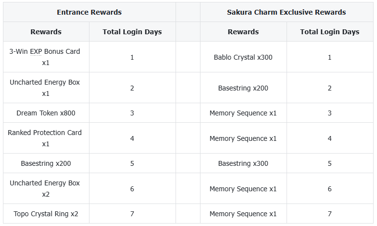 During the event, Navigators can unlock rewards sequentially by logging in daily. Additionally, purchasing the Sakura Charm unlocks even greater rewards.
