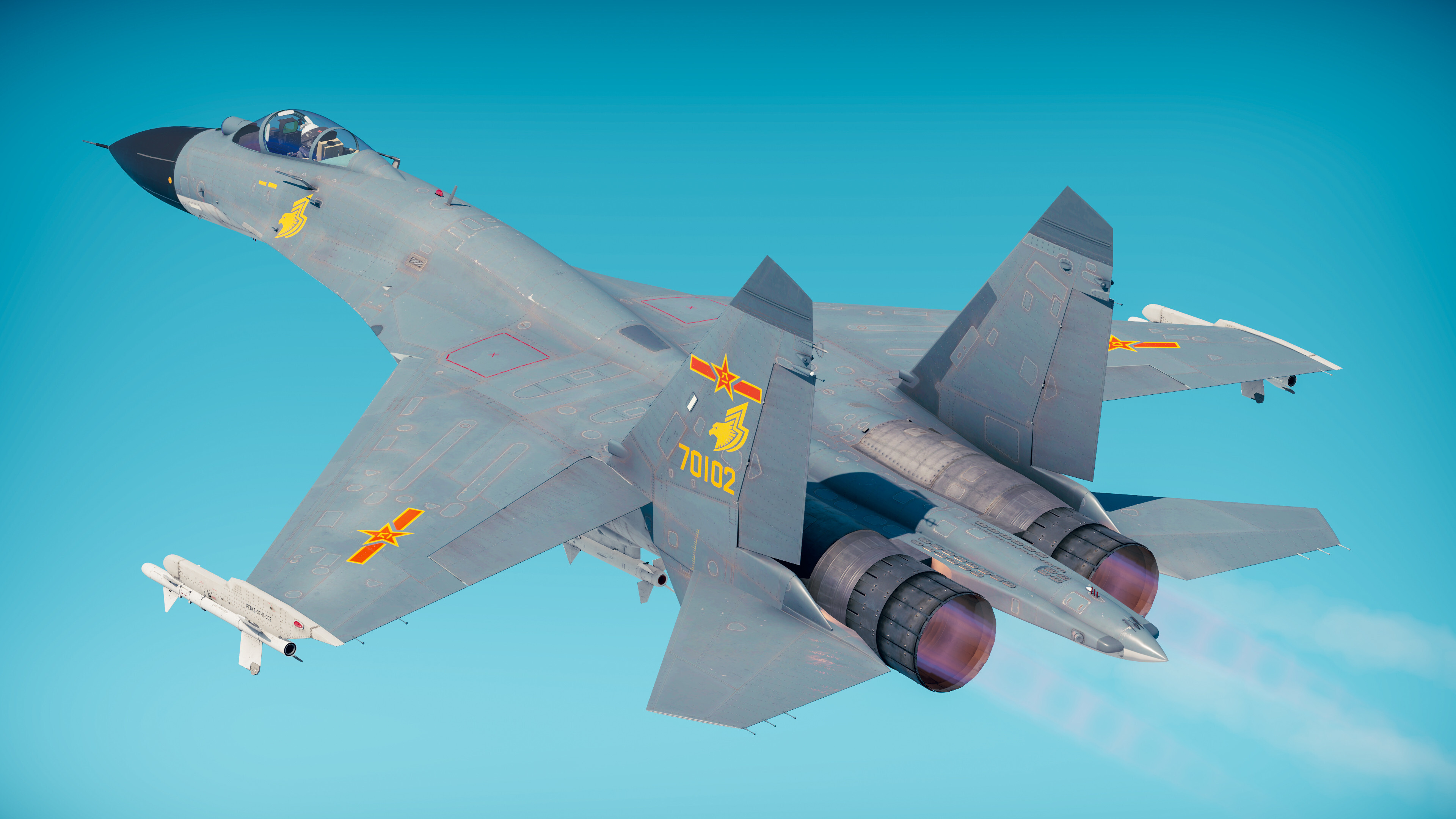 33rd Fighter Division emblem, PLAAF. The division was formed in 1960 in Hubei, composed of two regiments and equipped with the MiG-15bis. In 1969, the division moved to Chongqing, where they would develop the identity of the "Fog City Eagles" (雾都雄鹰). The emblem of the division is a golden eagle with a stylized "33" tracing its outline. The division still holds a legendary reputation, with one of the squadron's pilots, Jiang Jiaji (蒋佳冀), being the first pilot to win the "Golden Helmet" award at the annual air combat competition three times. The emblem is painted on the J-11 fighters of the division, on the outsides of the vertical stabilizers under the roundel, and on the port side of the fuselage under the rear of the cockpit; it is not painted on the starboard side due to the positioning of the cannon.